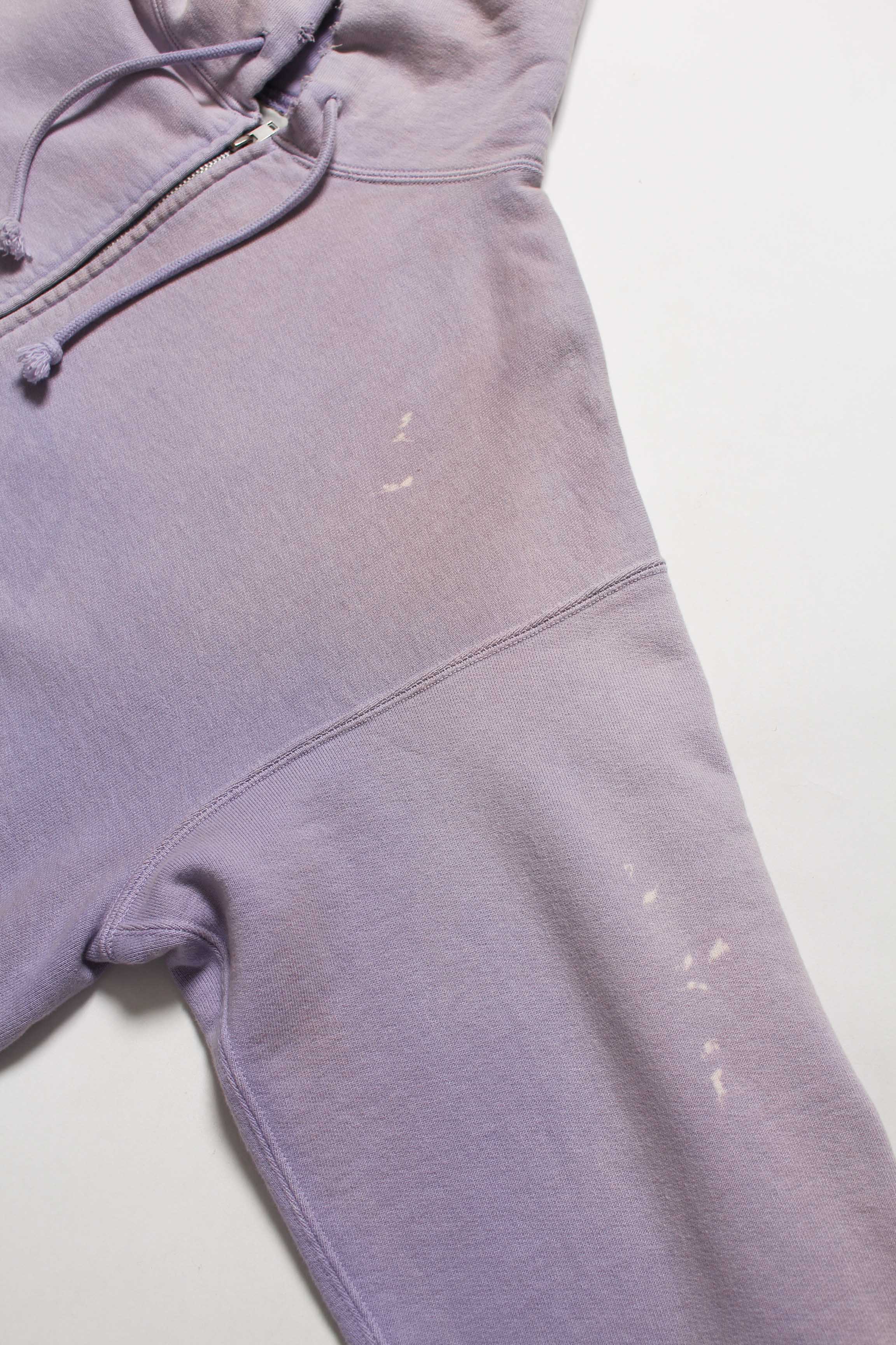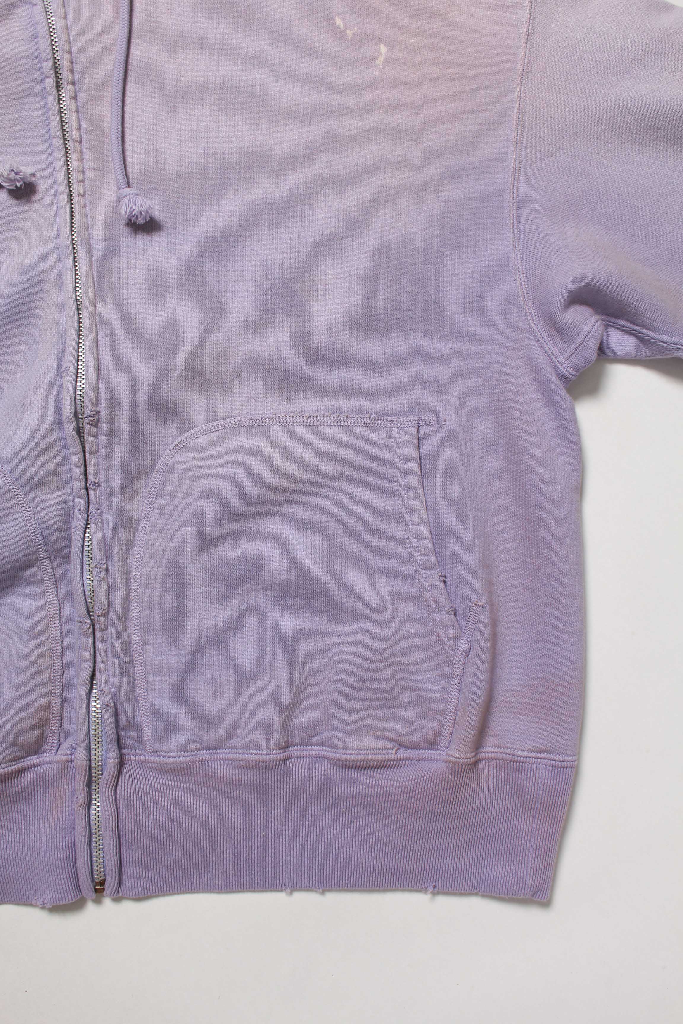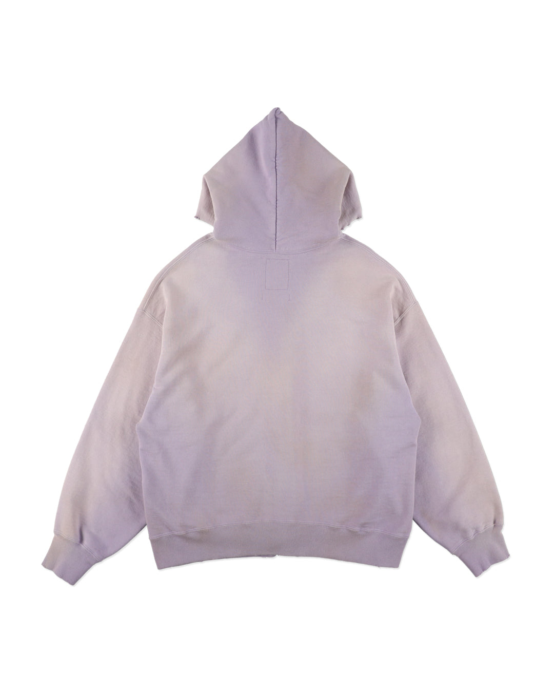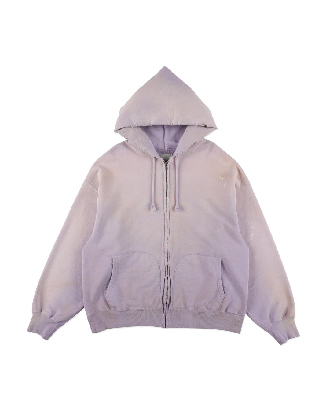 Recreates a highly regarded lavender tone seen in 1990s sweatwear, layered with BOW WOW’s realistic aging—fade and uneven color built like repeated wear and washing. Based on a 1950s separate-pocket zip hoodie structure, keeping vintage silhouette and stitch character. Made from heavy, non-brushed French terry with special-machine vintage texture, finished with a rough yet solid presence.
