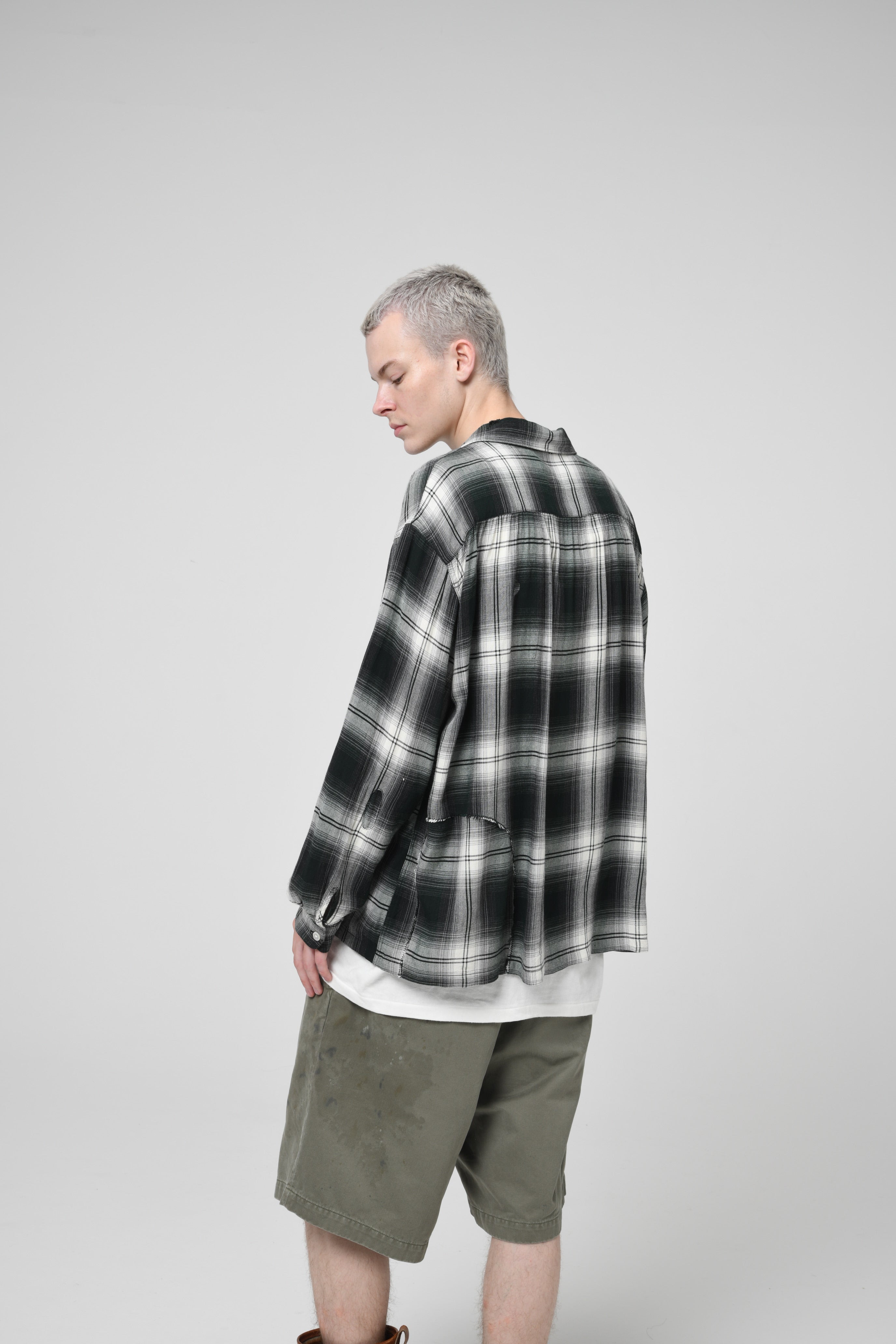 REMADE RAYON PLAID SHIRT AGED