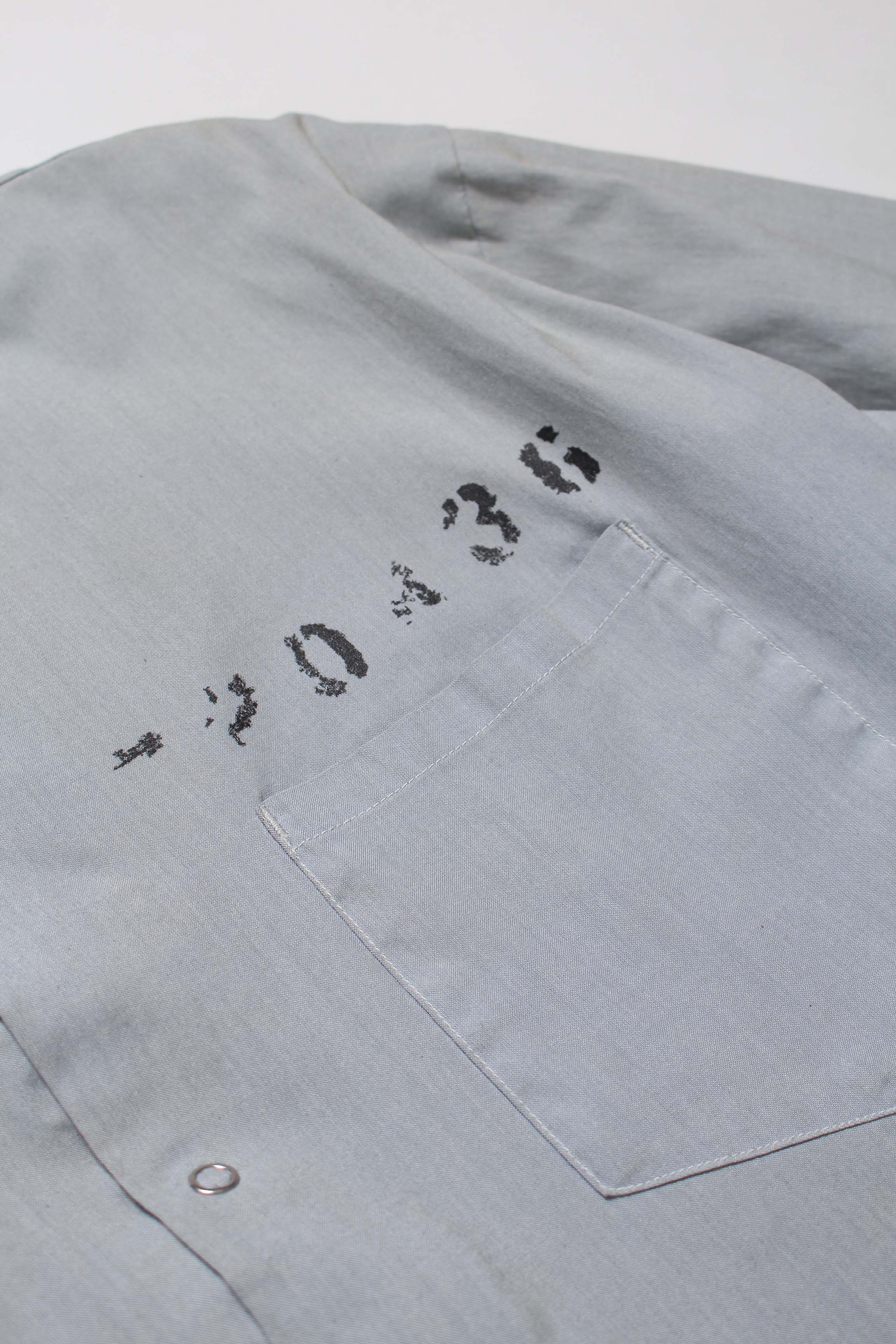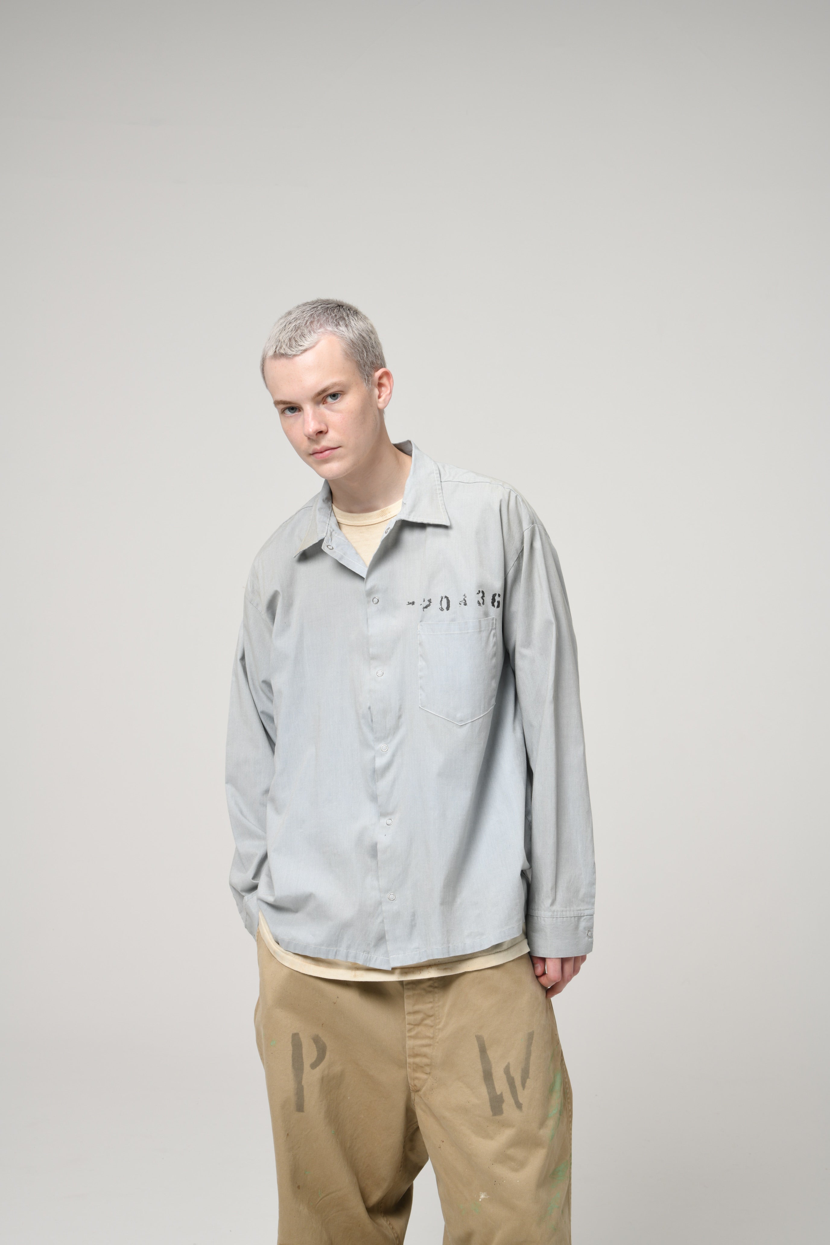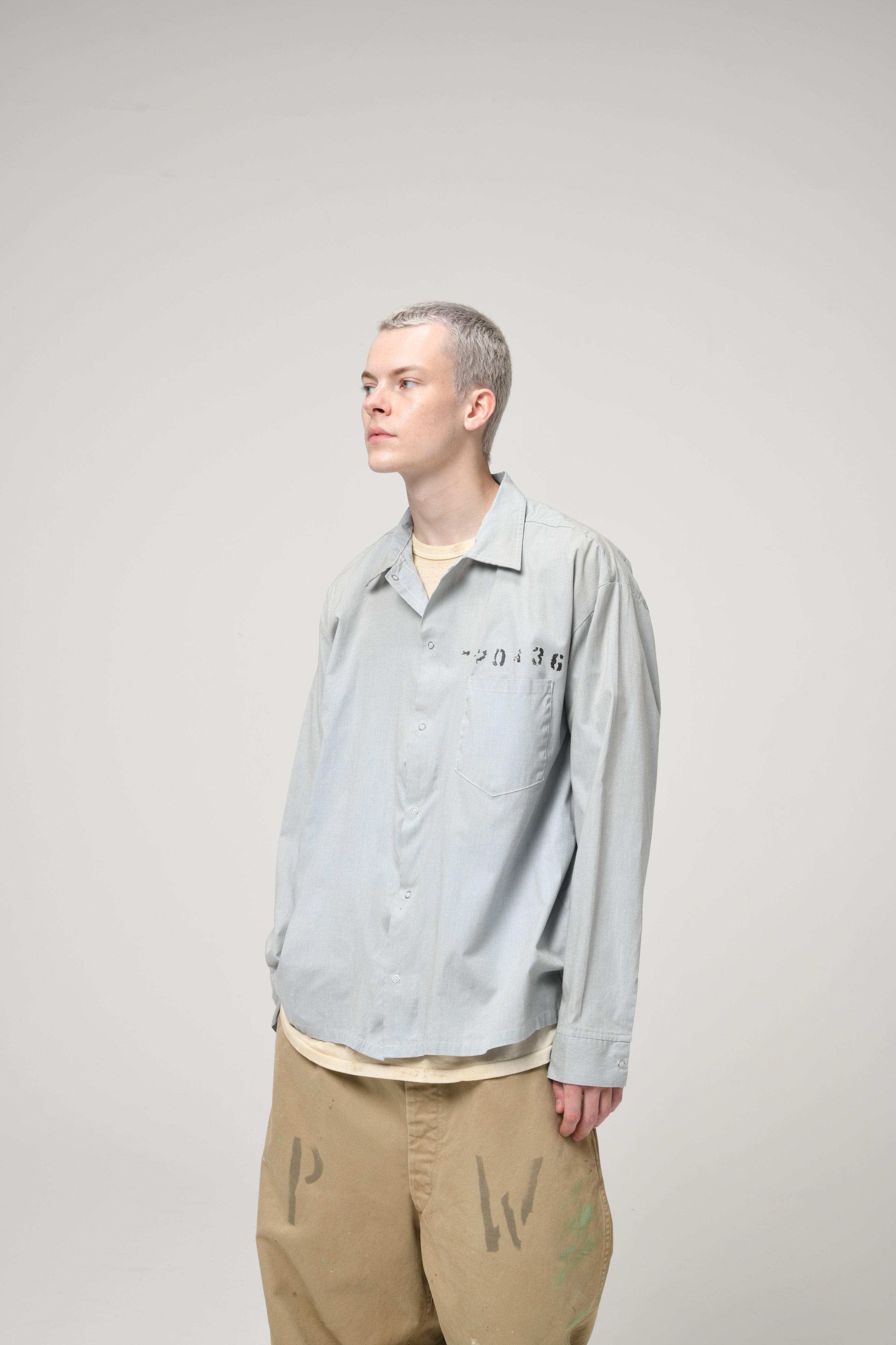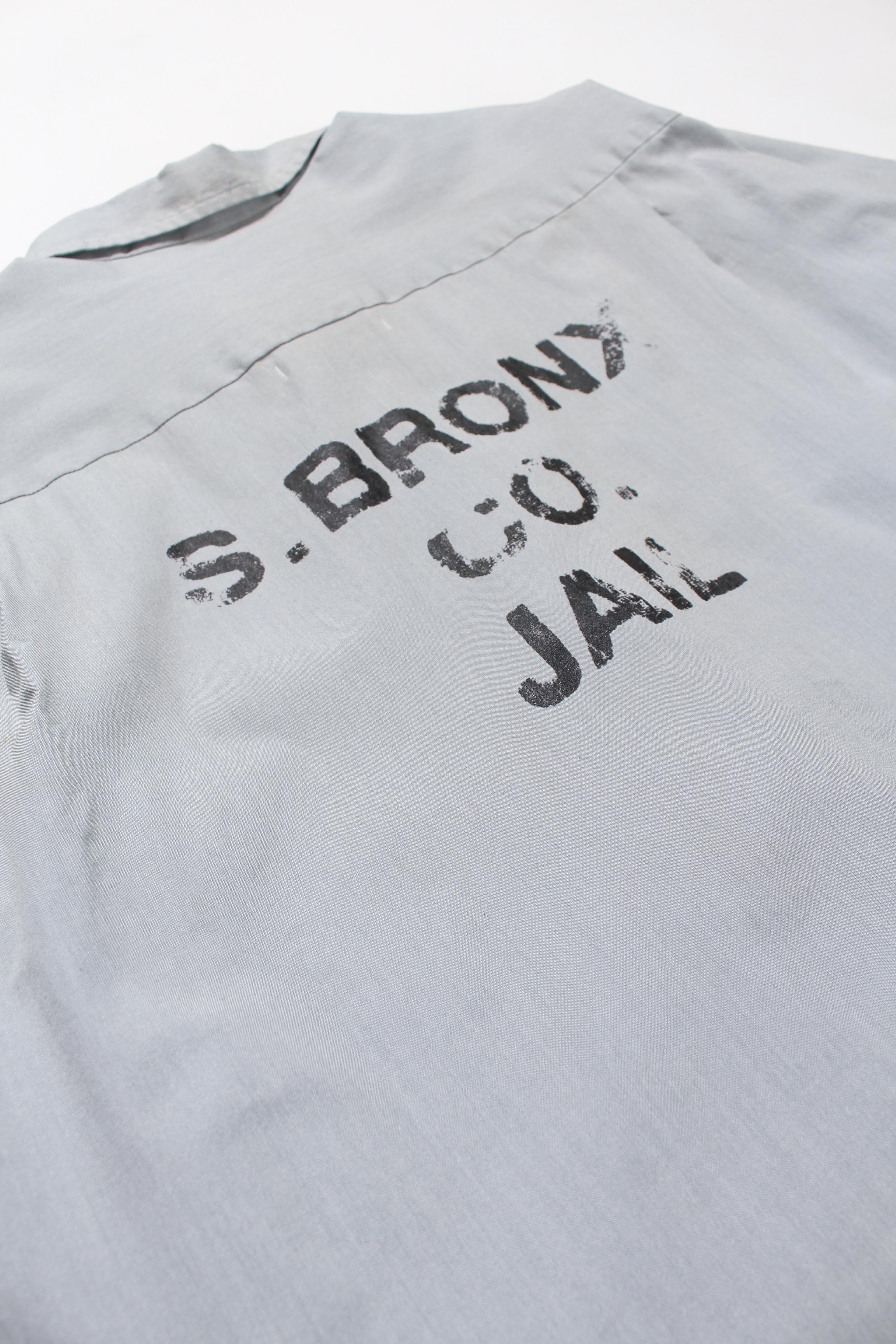 A prisoner shirt concept based on the fictional “S.BRONX CO JAIL,” built with the realistic presence of 1960s prisoner shirts. Constructed with a simple, inorganic feel intended for institutional use. Prisoner shirts were often discarded after service, making true vintage examples rare; surviving pieces tend to have strong atmosphere and value. Aging is applied to create the realism of long-term use within that context.