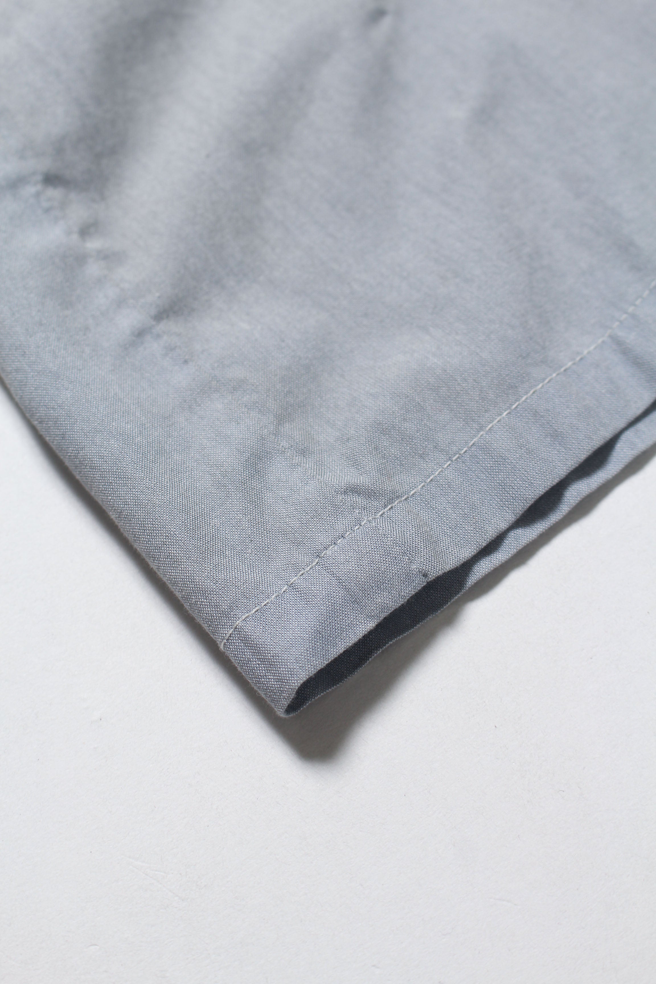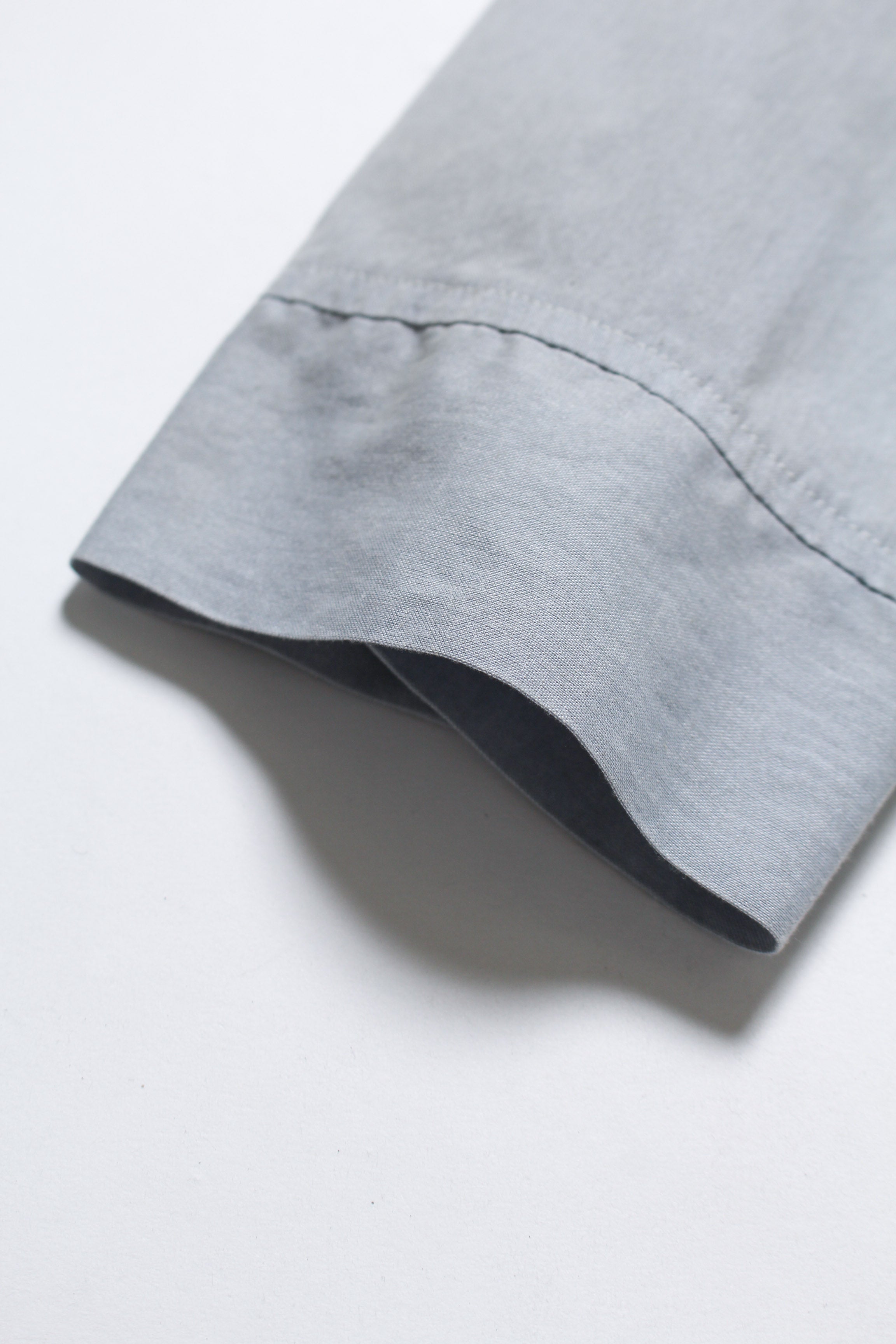 架空のJAIL「S.BRONX CO JAIL」の囚人服をイメージし、1960年代のリアルなプリズナーシャツの佇まいを背景に構成している。施設内での使用を前提とした簡素で無機質な表情を、そのまま写し取る感覚で仕上げている。 囚人シャツは役目を終えると破棄されることが多く、ヴィンテージ市場でも発見されにくい存在。残っている個体は状態や雰囲気に優れたものが多く、評価も高い。 そうした希少性と空気感を踏まえ、加工によって実際に使い込まれてきたかのようなリアリティを持たせている。