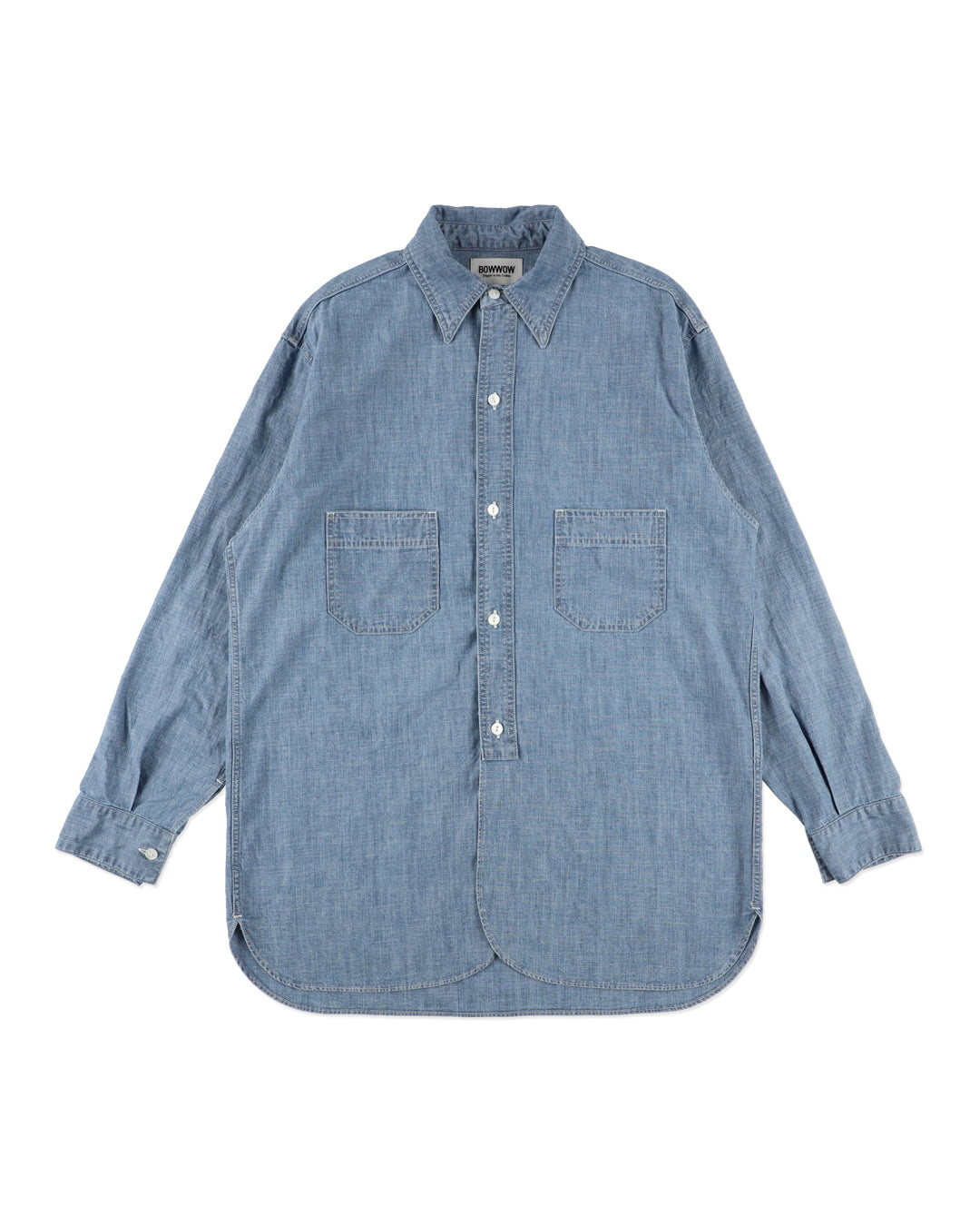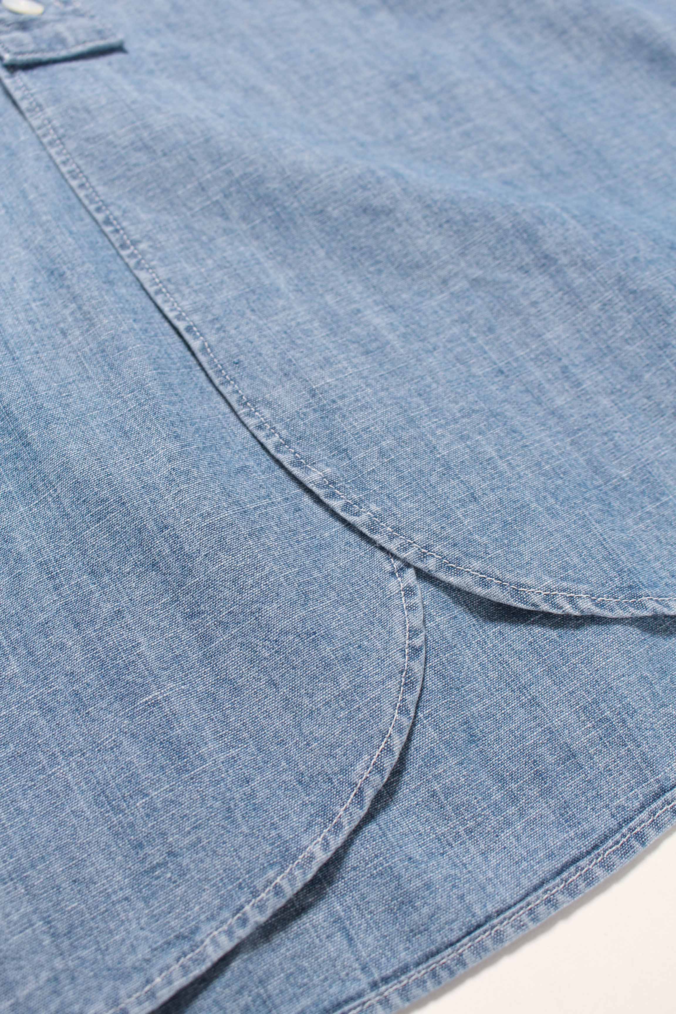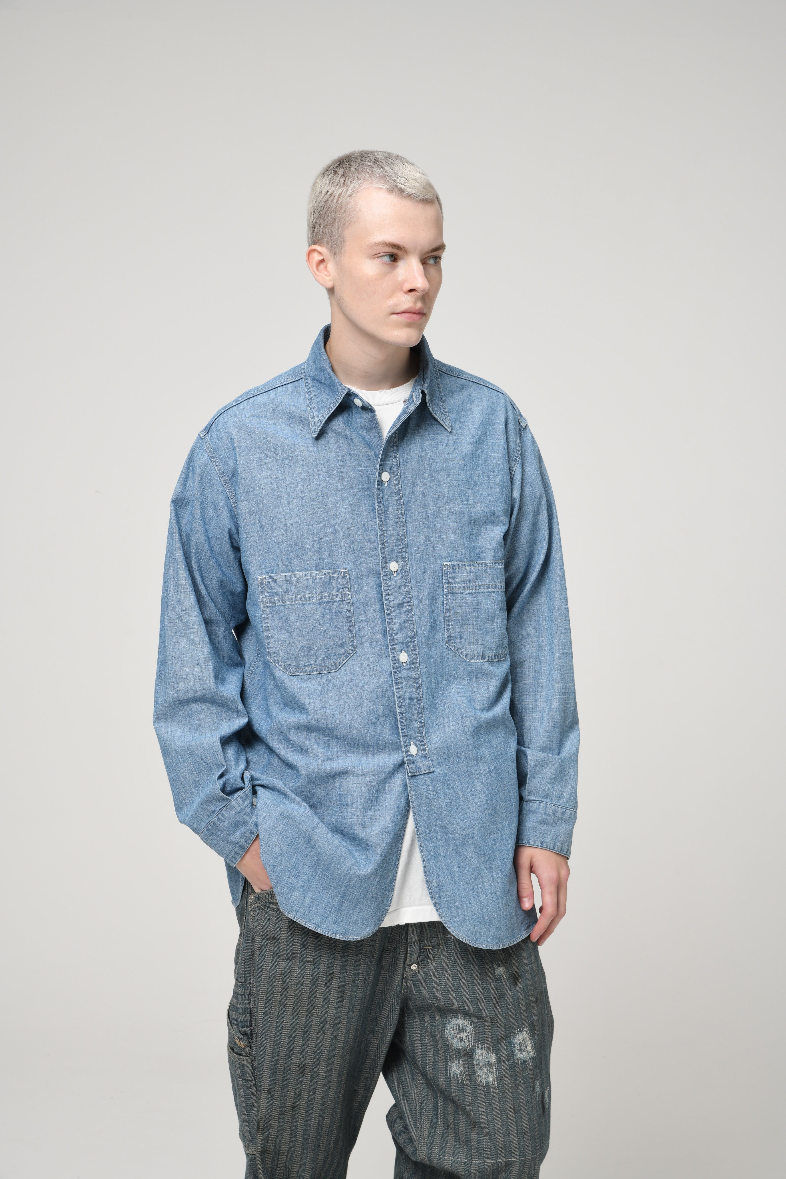 1930年代以前の特別に古いディティールを踏まえたシャンブレーシャツ。縫製や構造に当時ならではの素朴さと荒さを残し、古い時代のワークシャツの空気感をそのまま写し取っている。 加工表現はあえて控えめに、着用と洗いを重ねてきたかのような自然な表情を再現。シンプルに使い込まれた佇まいが、そのまま魅力として立ち上がる仕上がりになっている。