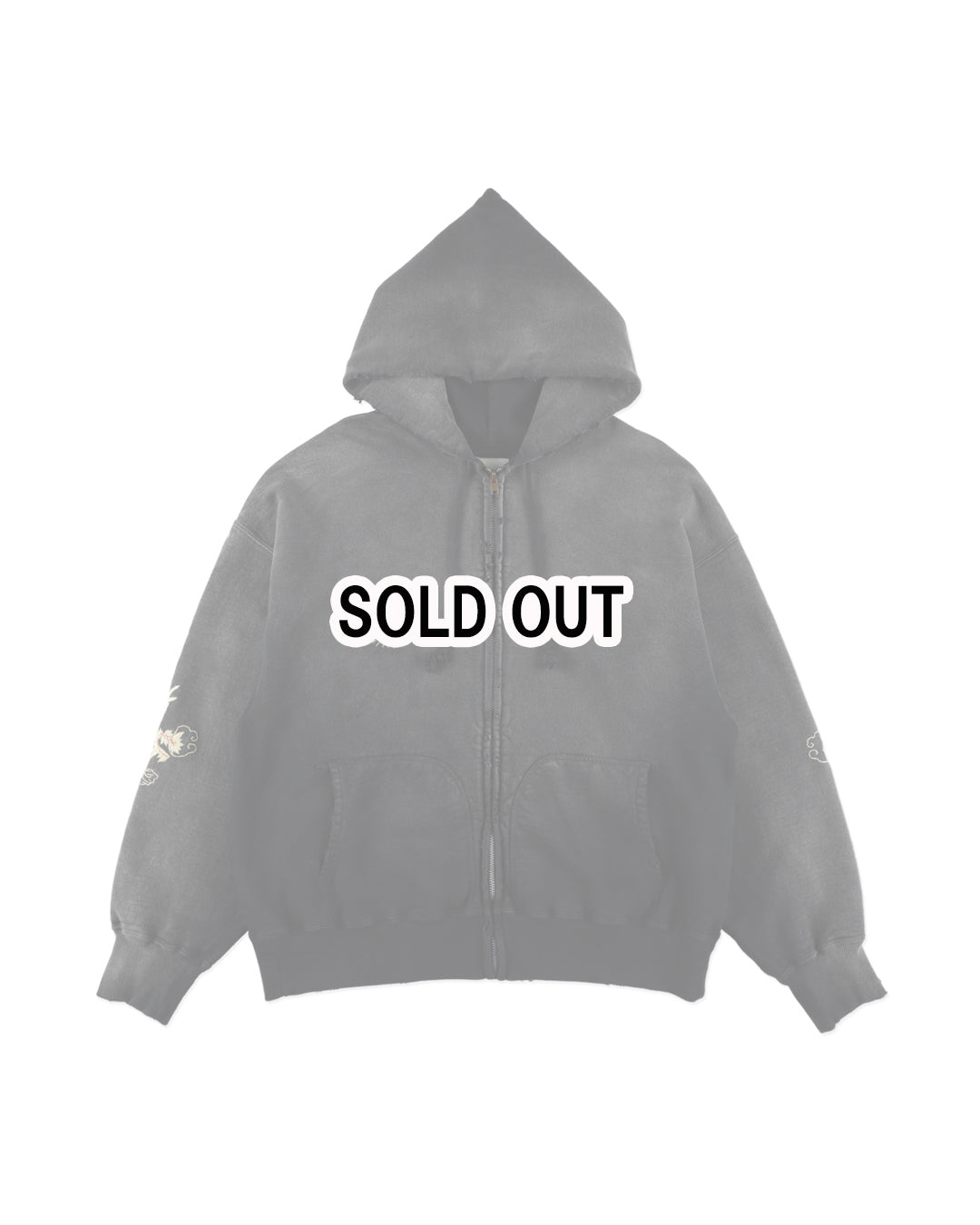 Based on the details and airy feel of zip-up hoodies used until the early 1960s, this piece incorporates the souvenir culture of the Vietnam War era. The Viet-Jack embroidery traditionally found on jackets is deliberately applied to a sweatshirt hoodie, evoking the image of soldiers wearing their personal items brought back from the battlefield. A distressed finish imparts the worn-in texture and authenticity of years of wear, expressing the intersection of military and outsider culture.