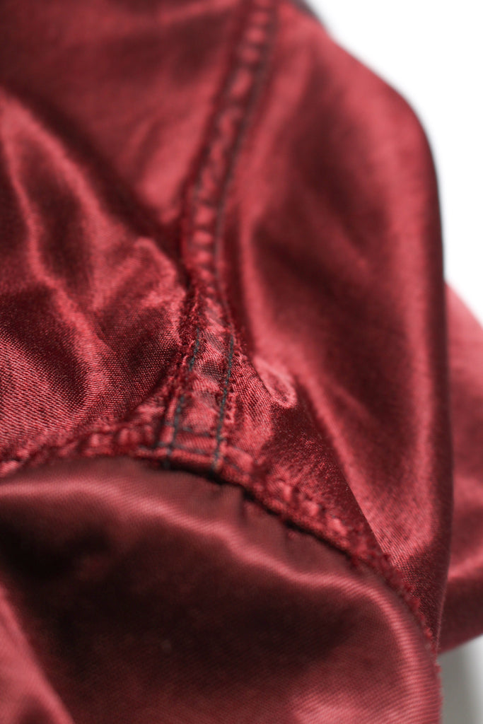 The aging process meticulously recreates the faded satin shell, puckering, and worn-in look, bringing that memory-filled piece into the present.