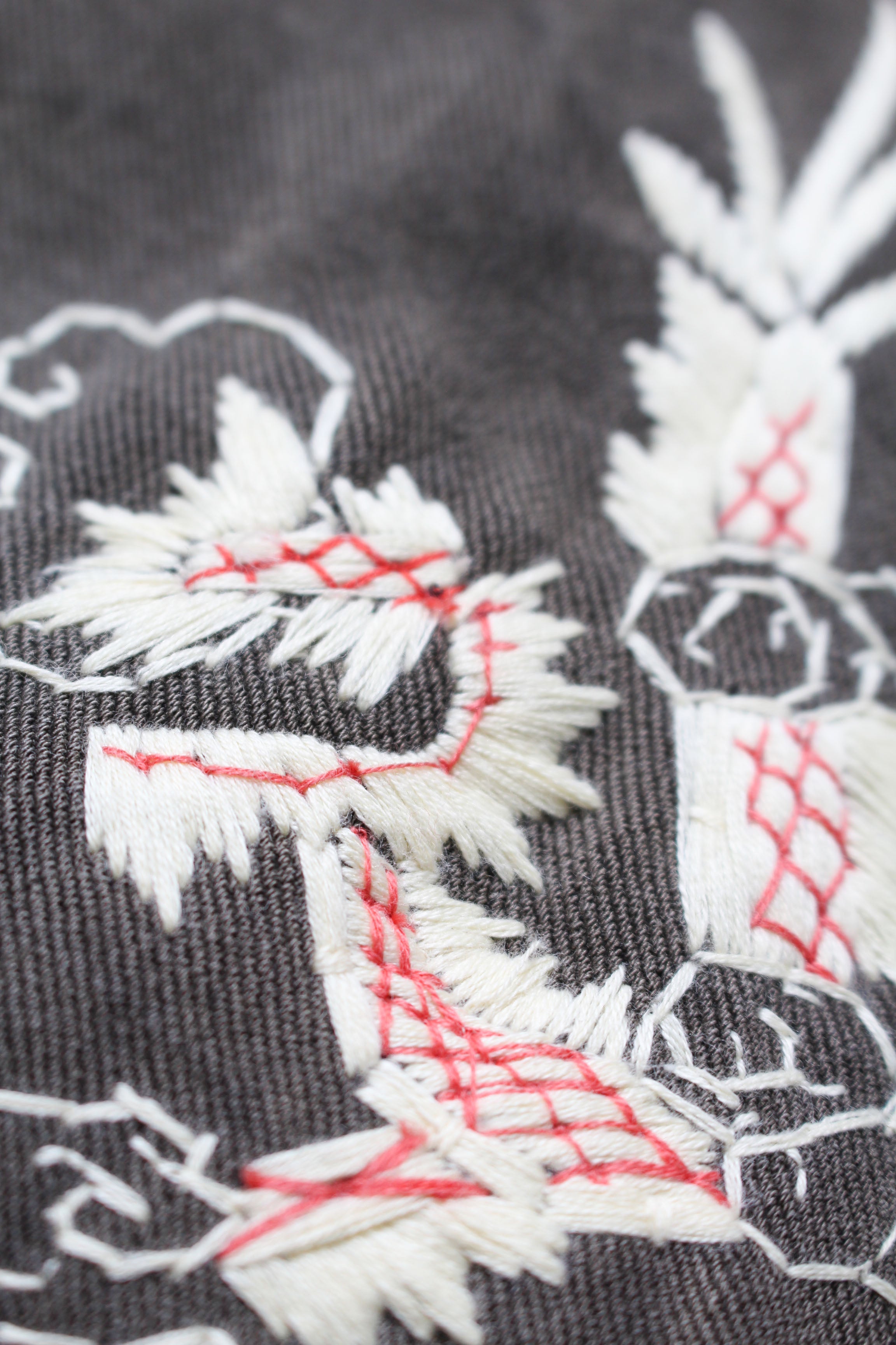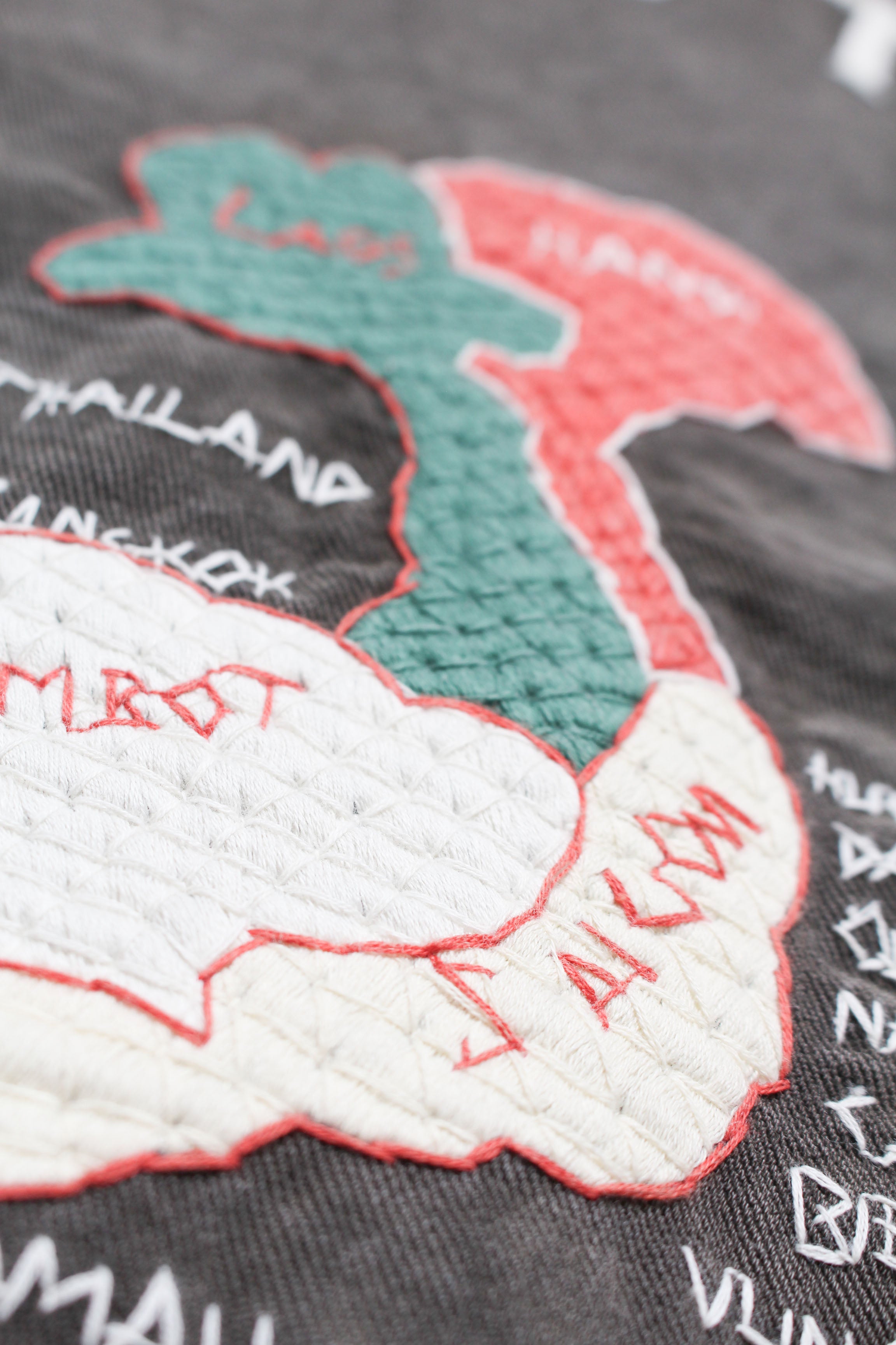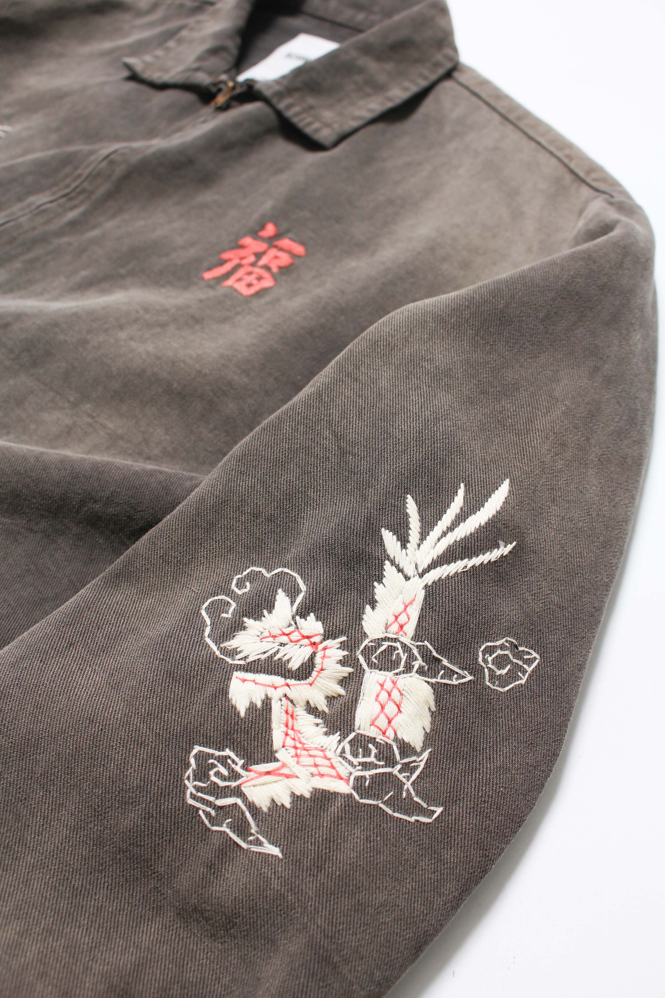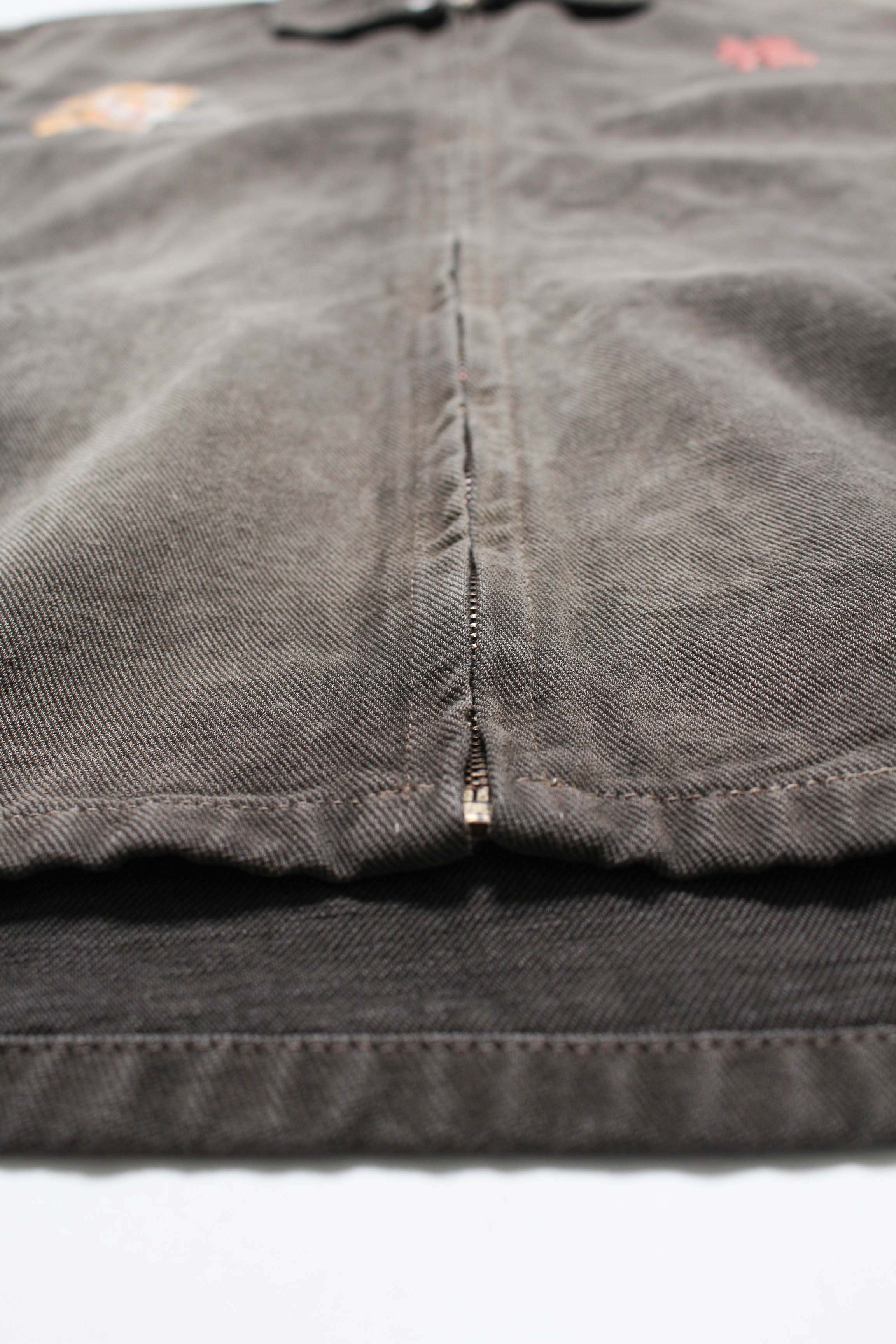 This piece is a reimagined version inspired by the so-called "Viet-Jacket," ordered as souvenirs by U.S. soldiers deployed to the Vietnam War from the late 1960s to early 1970s. The Viet-Jacket was not officially issued by the U.S. military; it was made locally by tailors as personal items. The embroidery on these jackets carries memories of units, places, and the emotions of that time. Rather than being worn in combat, they were typically worn during off-duty hours on base, when going out, or upon returning home. After their practical use ended, they became cherished as symbols of defiance. BOW WOW, drawing on this history, elevates the product by adding the expression of aged patina characteristic of a well-worn souvenir jacket imbued with culture and emotion.