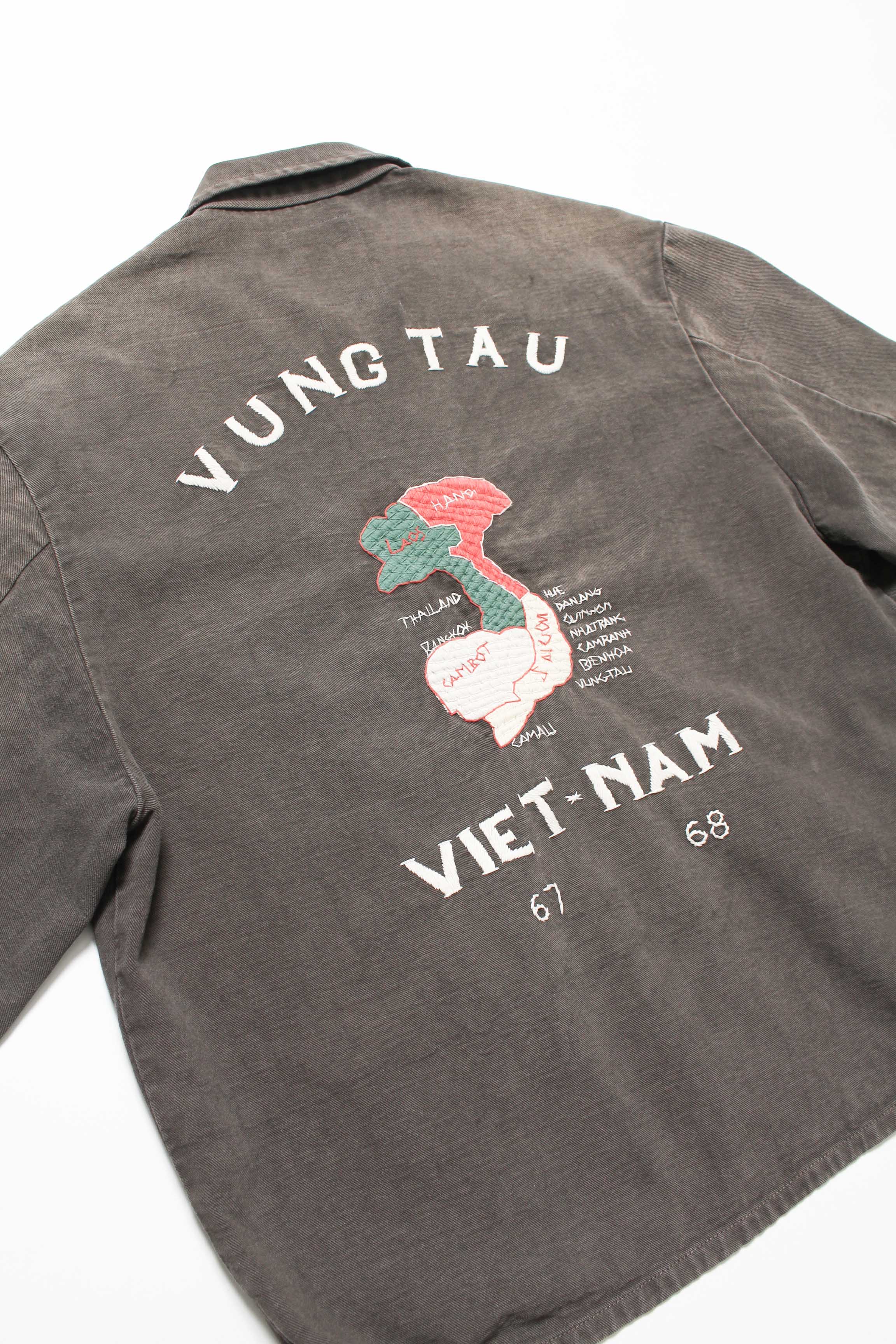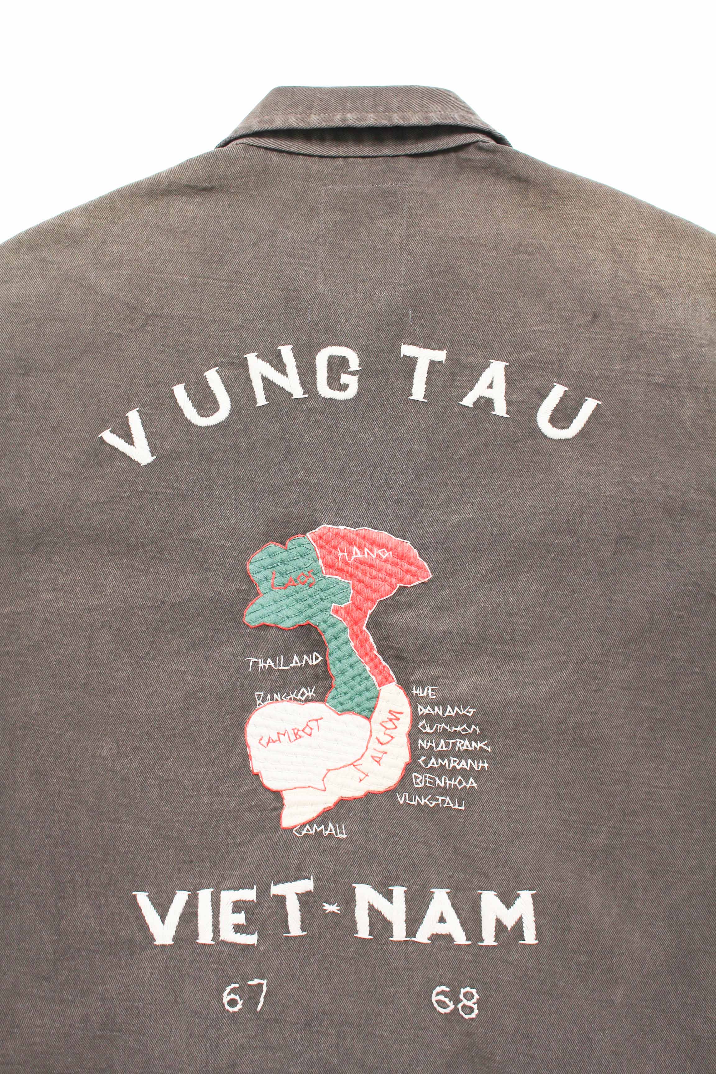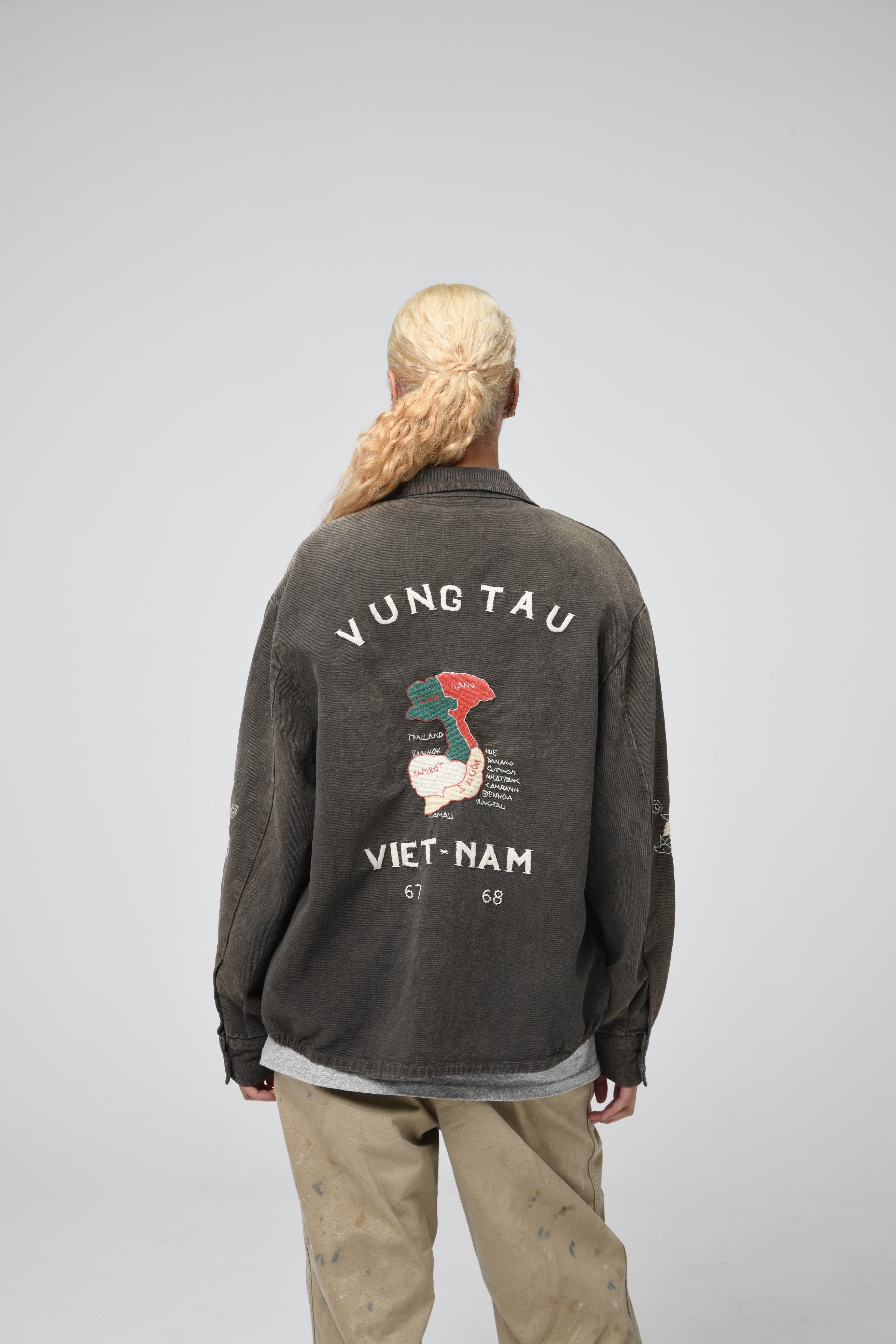 A reconstructed take on the iconic “Vietnam Jacket” (Vet Jan), originally custom-ordered by U.S. soldiers as souvenirs in the late 1960s to early 1970s. Not an official military issue, these private pieces were tailored locally, with embroidery capturing unit ties, places, and emotions of the time. Worn more in off-duty moments—on base, on outings, and upon returning home—later embraced as a symbol of rebellion. BOW WOW elevates this lineage into an aged souvenir jacket, adding realistic wear and timeworn expression.