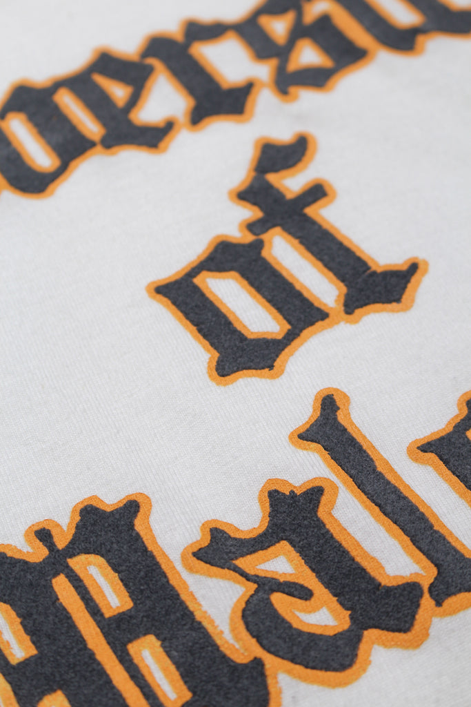 The body is a long-sleeve tee crafted from the brand's signature tubular jersey knit, composed of 88% cotton and 12% rayon.