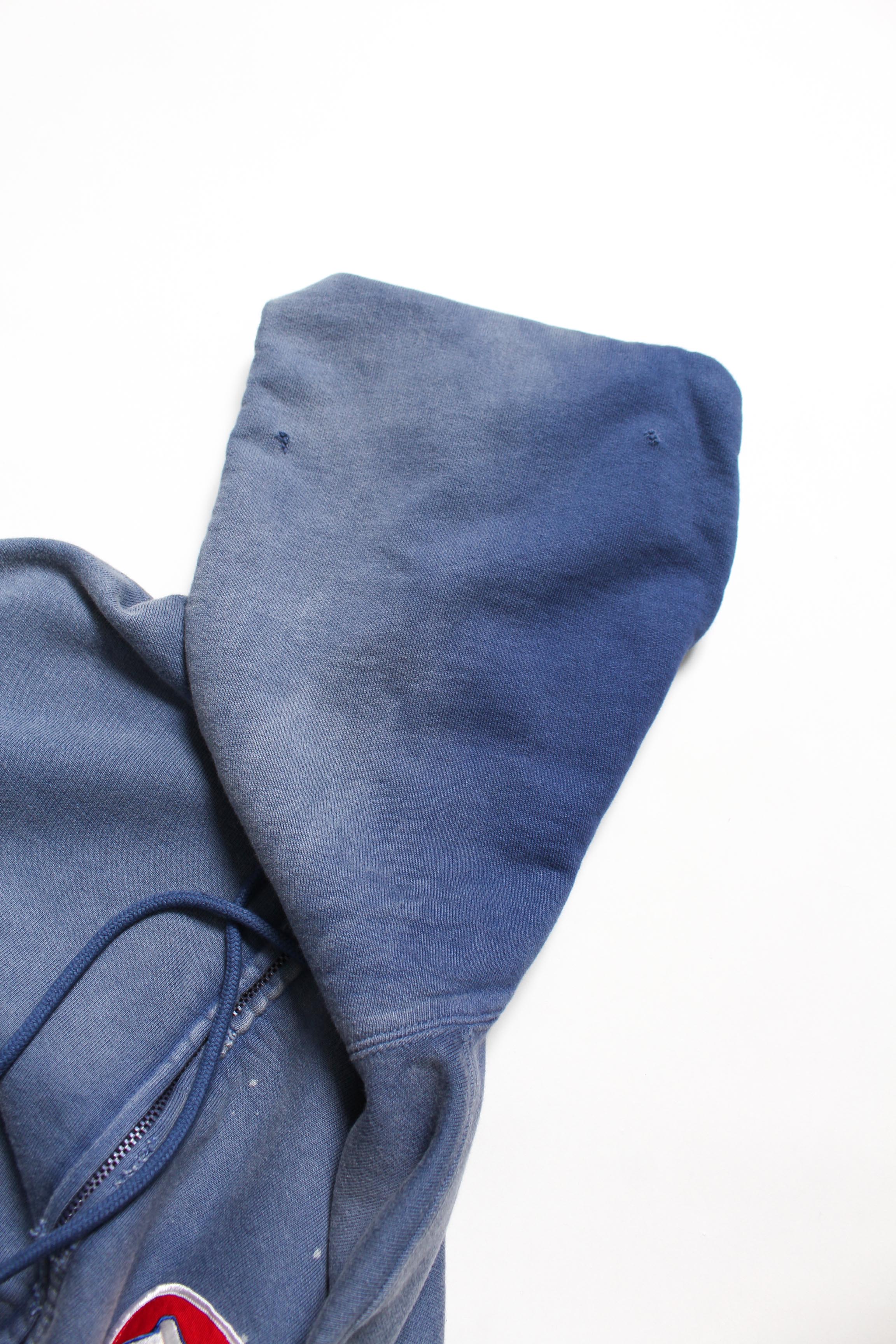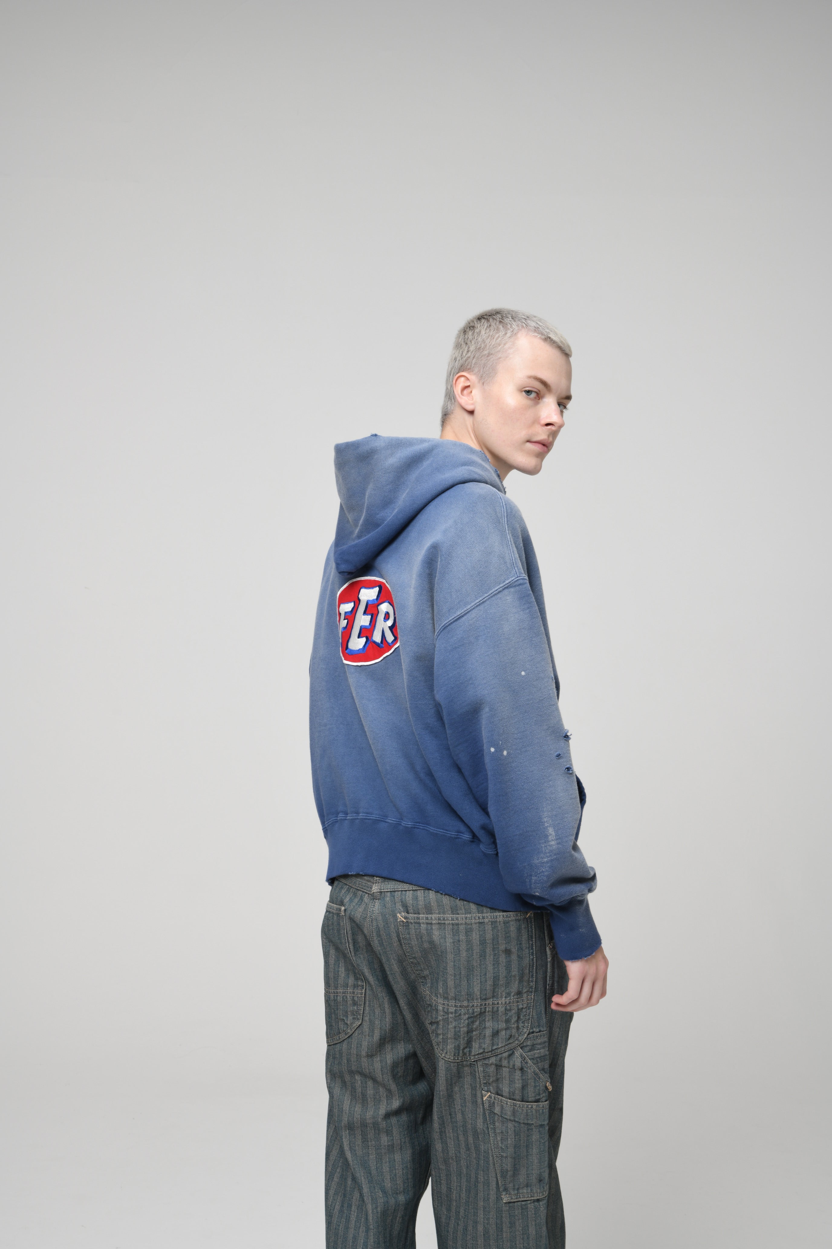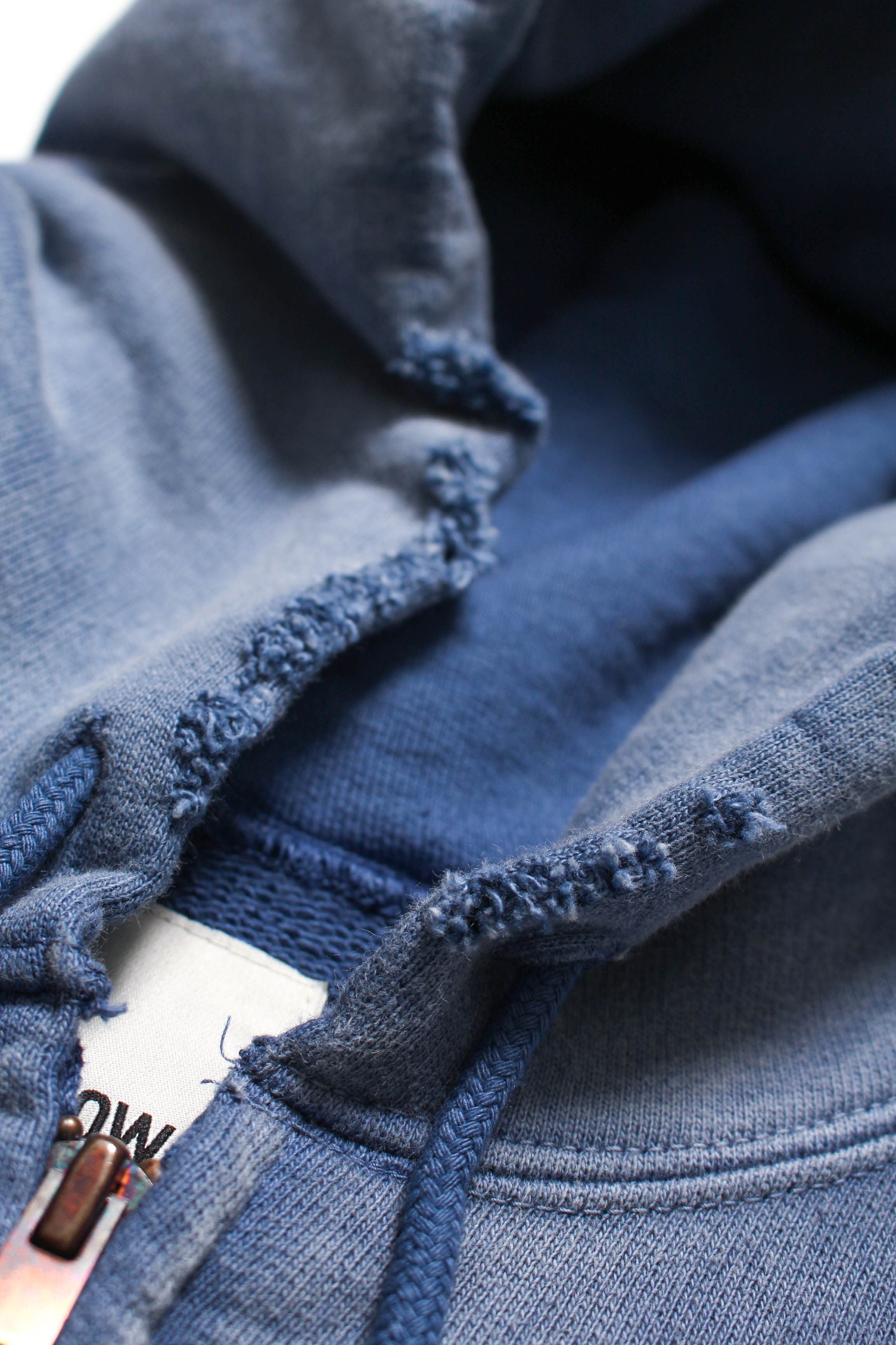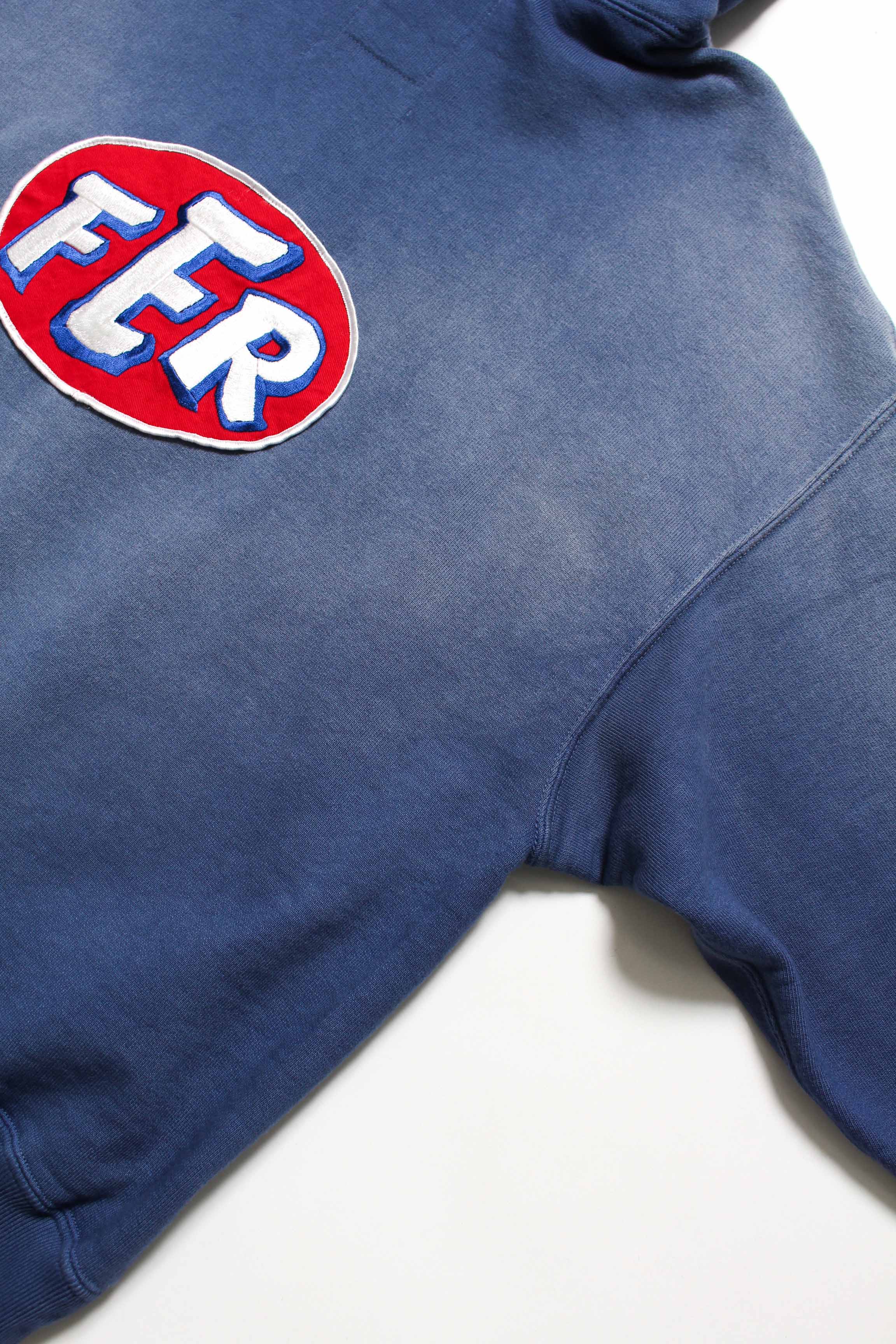 A zip hoodie with a motor-industry uniform worldview, featuring a logo patch that adds an industrial, powerful mood. Designed with the stance of a garage uniform, pushing a rugged and practical presence to the front. Based on a 1950s zip hoodie with separate-pocket construction, reflecting the era’s structure and balance while keeping a vintage silhouette and stitch character. Made with heavyweight, non-brushed French terry, preserving the vintage texture from a special knitting machine. Realistic aging is treated as part of the design, giving a relaxed look with a firm core expression.