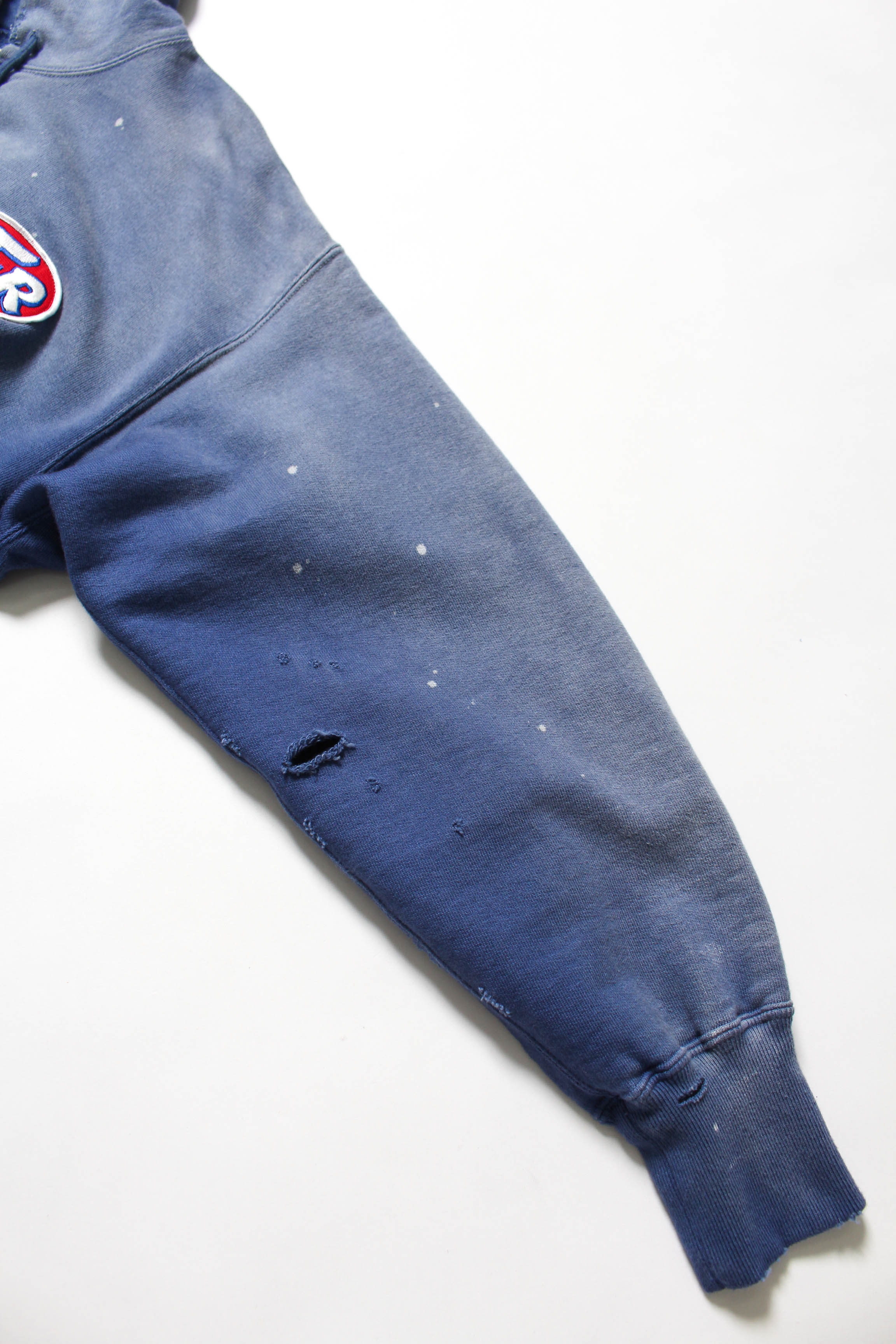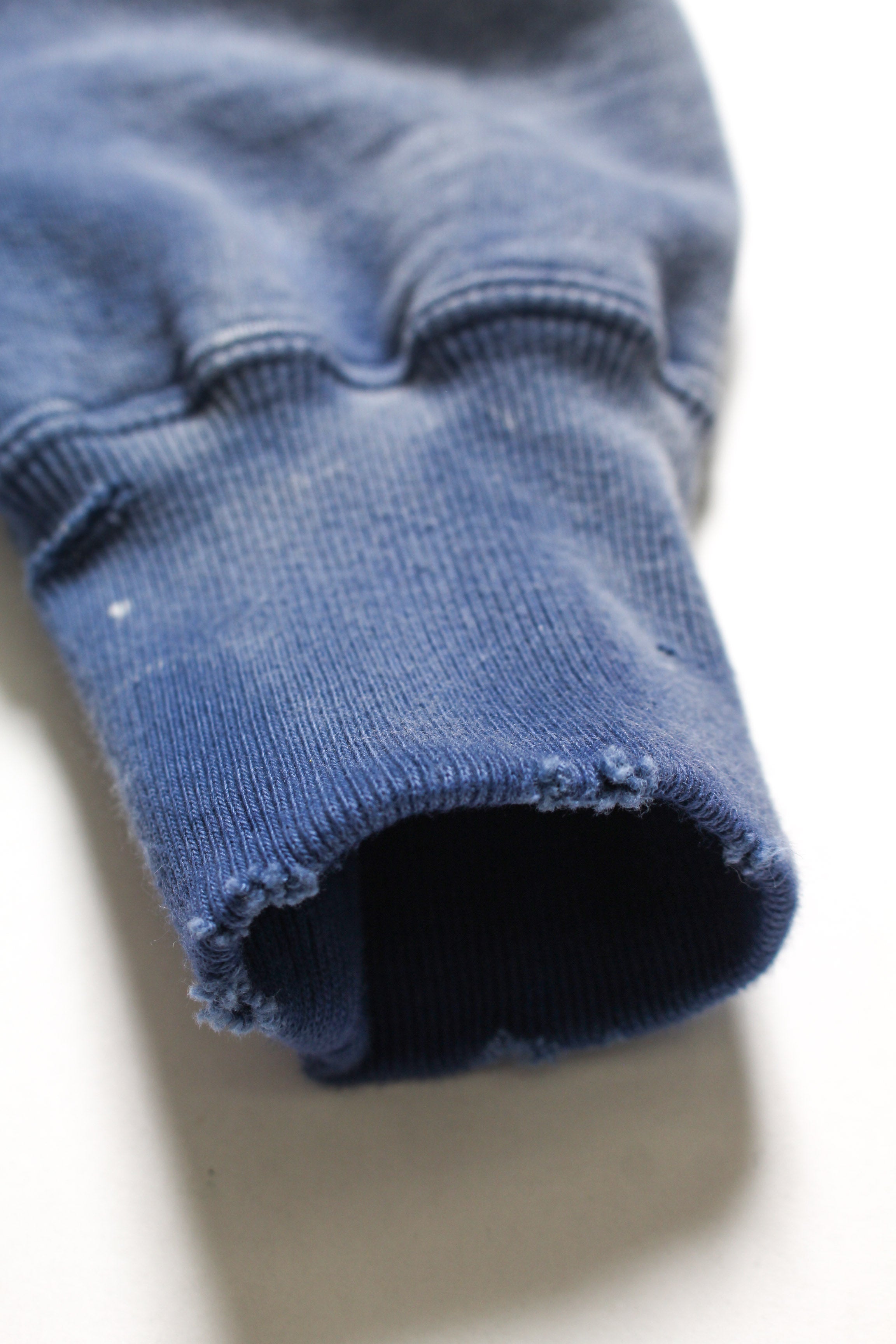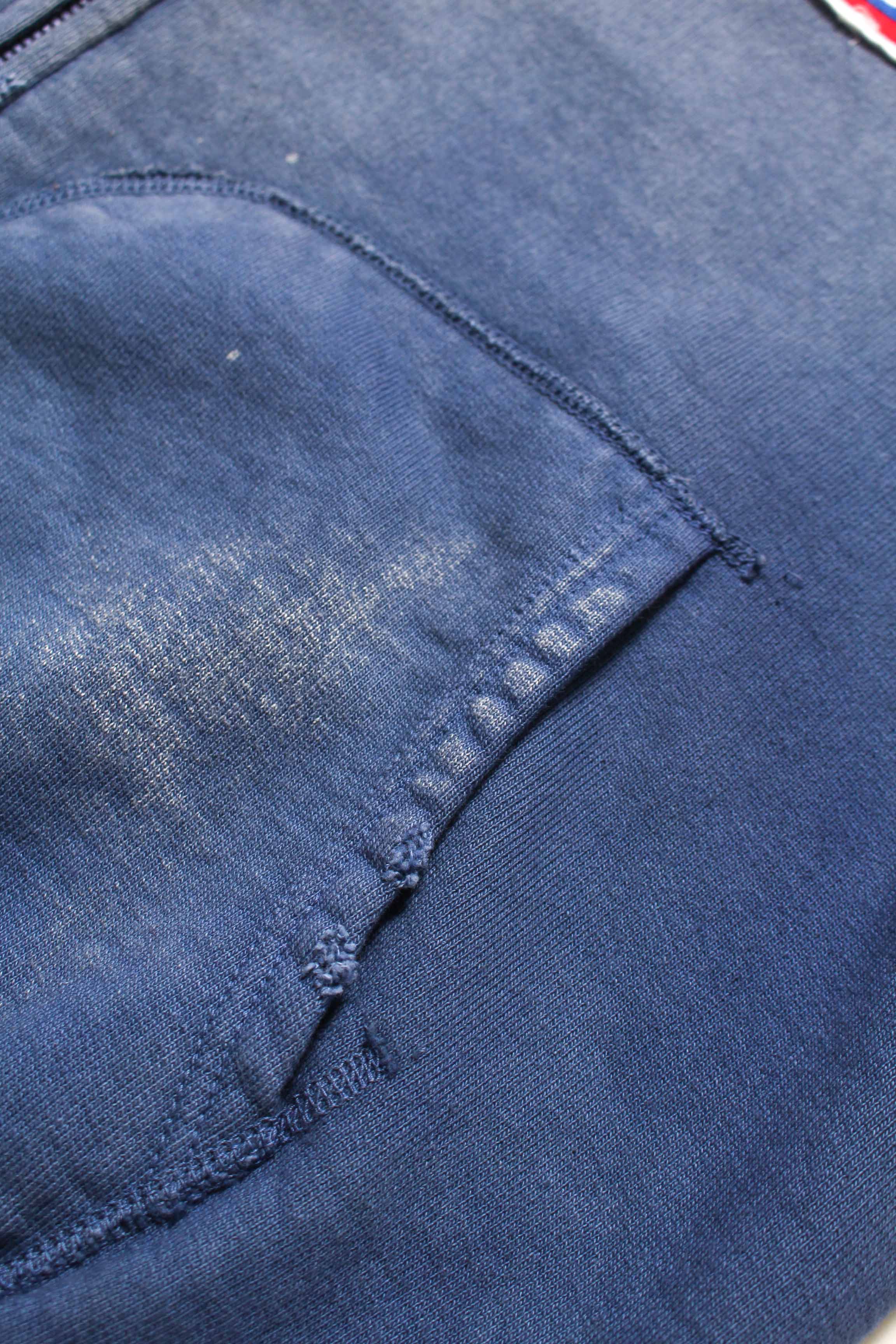 モーター関連メーカーをイメージして構成したロゴパッチを配し、工業的で力強いムードをプラスしたジップパーカー。ガレージユニフォームのような佇まいを意識し、無骨で実用的な空気感を前面に出している。 1950年代に見られるセパレートポケット仕様のジップパーカーを背景に、当時の構造とバランスを踏まえた設計。ビンテージらしいシルエットと縫製の表情を活かしている。 起毛無しの厚地裏毛を使用し、特別な編み機が生み出すヴィンテージの質感をそのまま残した仕上がり。ラフさの中に芯のある表情を持たせ、リアルな加工表現もデザインとしている。