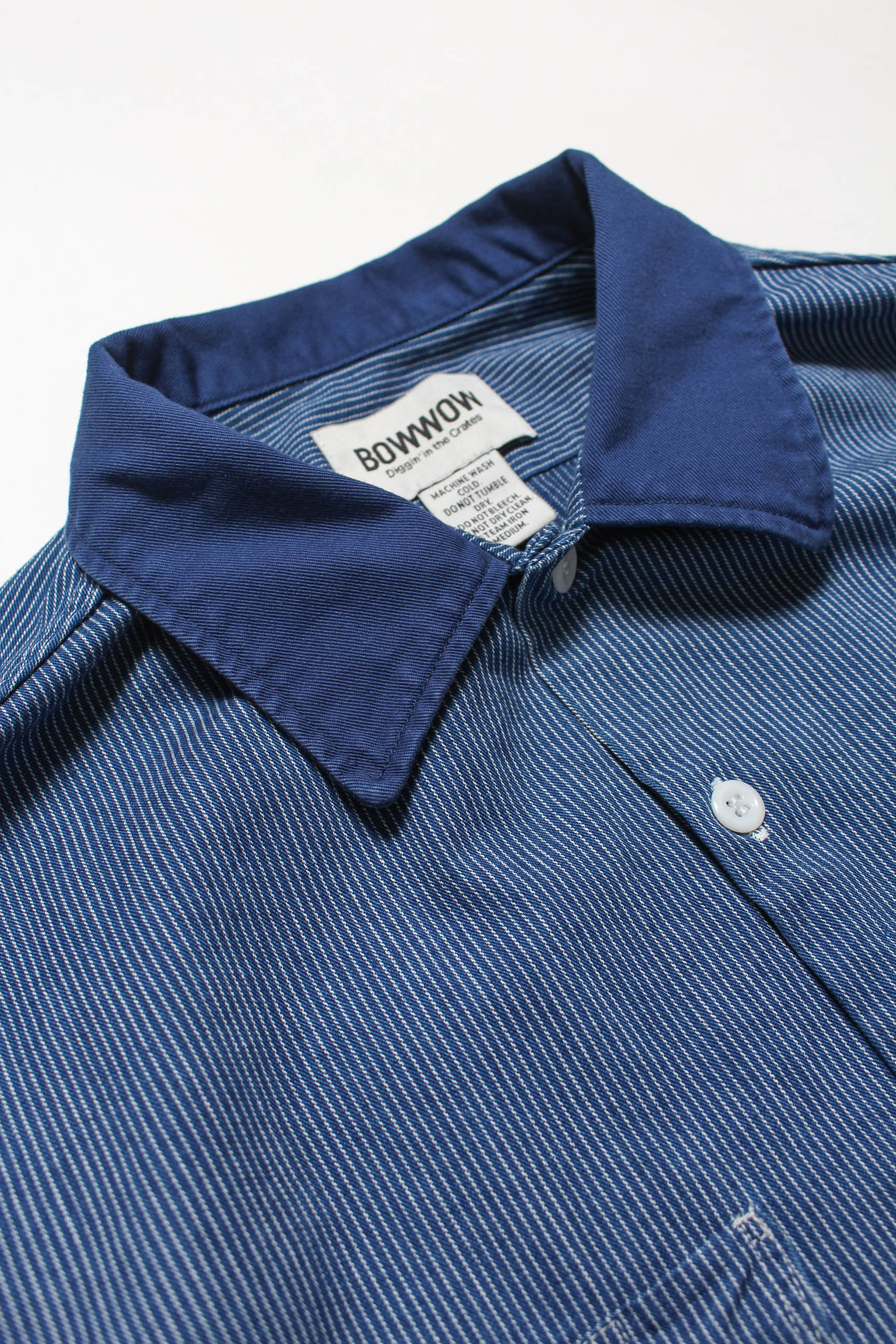 Inspired by a two-tone shirt with “hidden classic” detailing from the 1950s, rebuilt in indigo fabric while keeping the rugged balance and material character of vintage workwear. Panel placement and construction carry both practicality and design typical of the era. A logo patch—composed with a motor-industry manufacturer in mind—adds an industrial, powerful mood. Designed with the stance of a uniform worn as true workwear. A finish where believable company-uniform realism and earthy expression coexist.