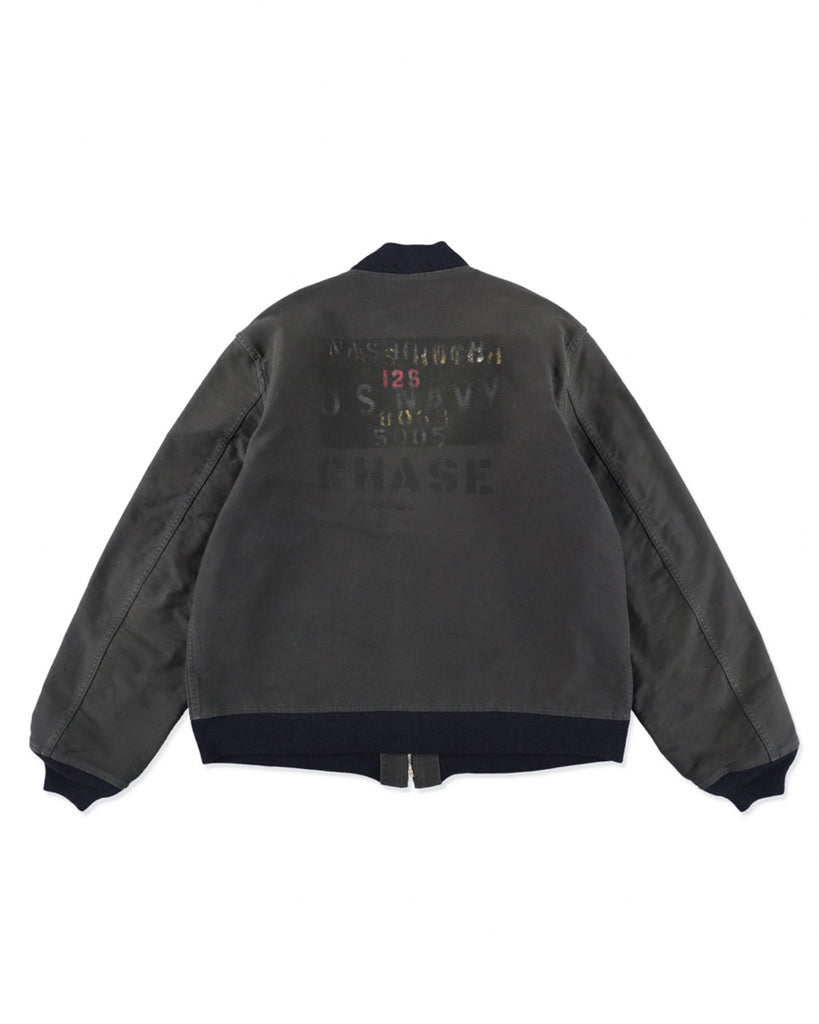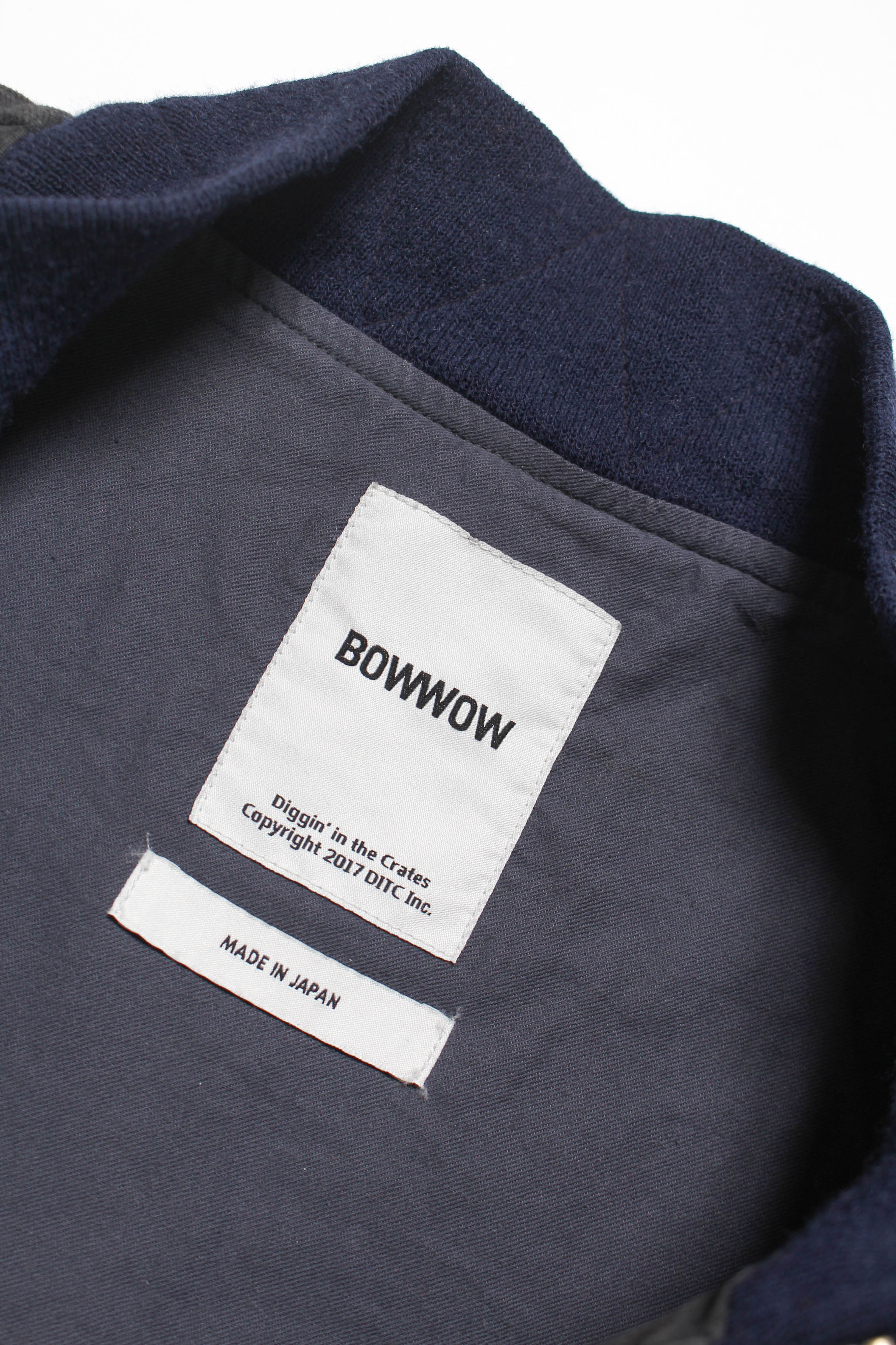 Prioritizing street functionality, it deliberately omits alpaca lining to emphasize the functional beauty of thick, resilient jungle cloth that blocks wind and rain. Embracing the aging of the deck zip as an aesthetic, it embodies BOW WOW's concept: “Born on the deck, perfected on the street.” The USN stencil work on the back is also a highlight.