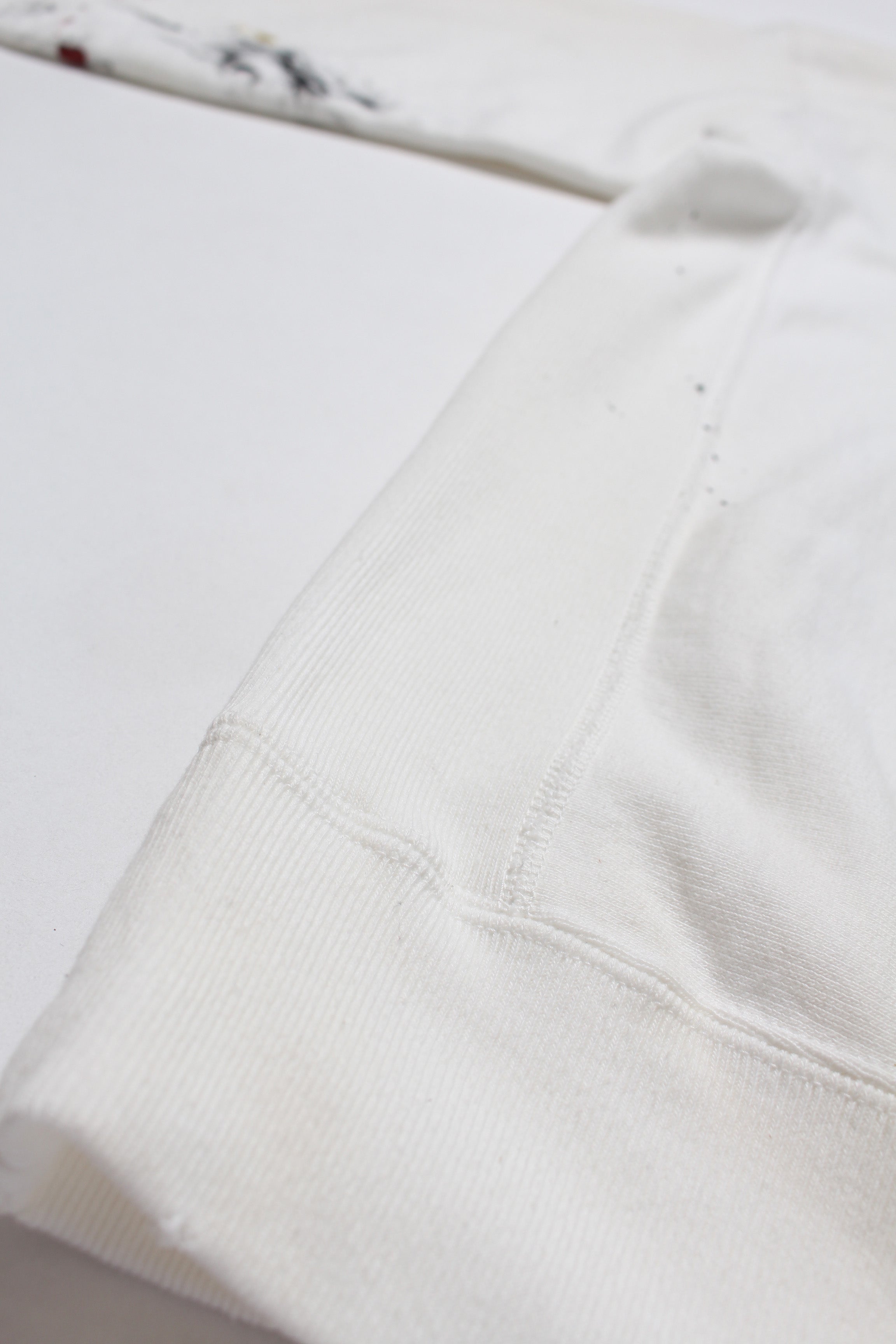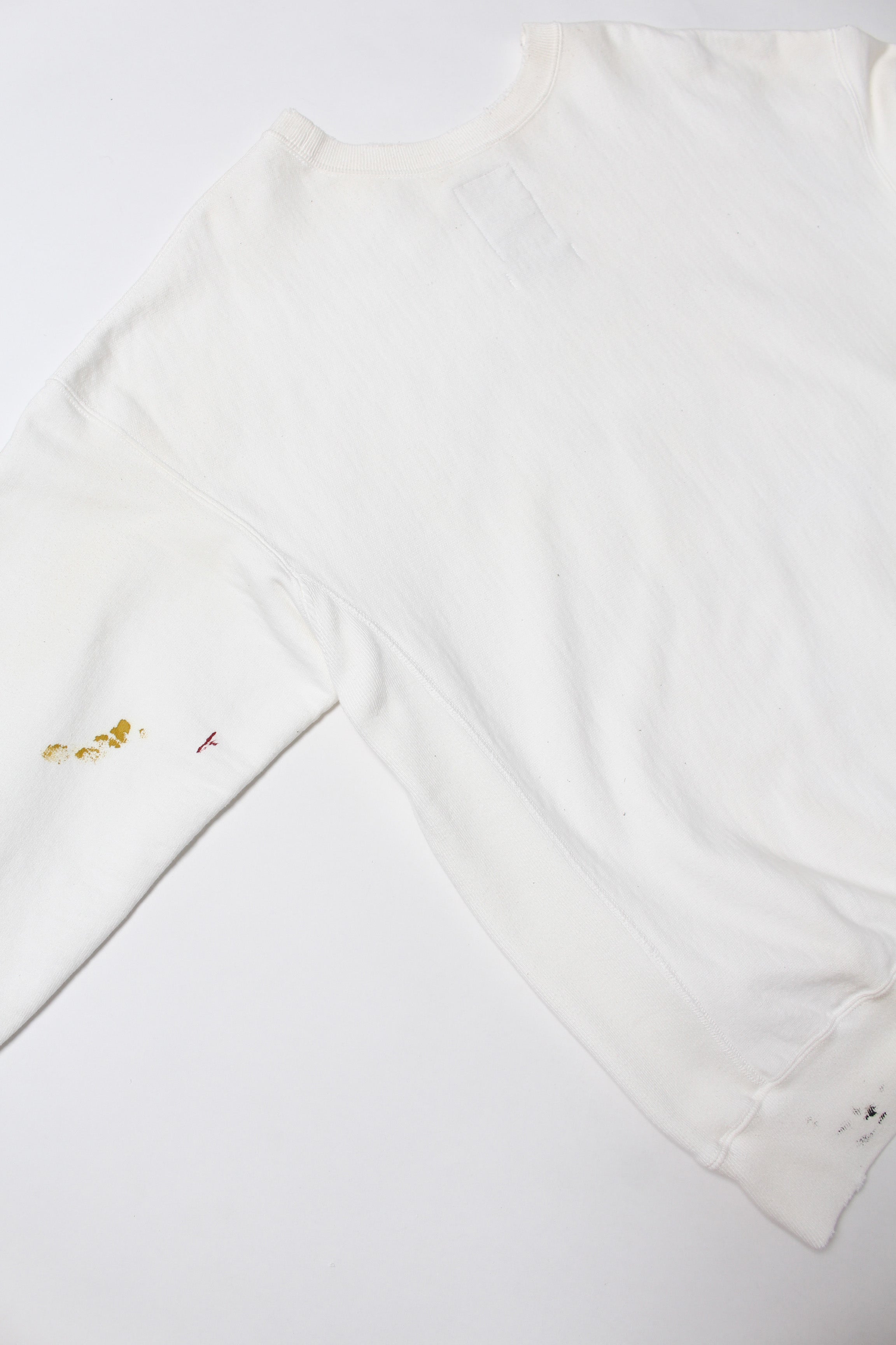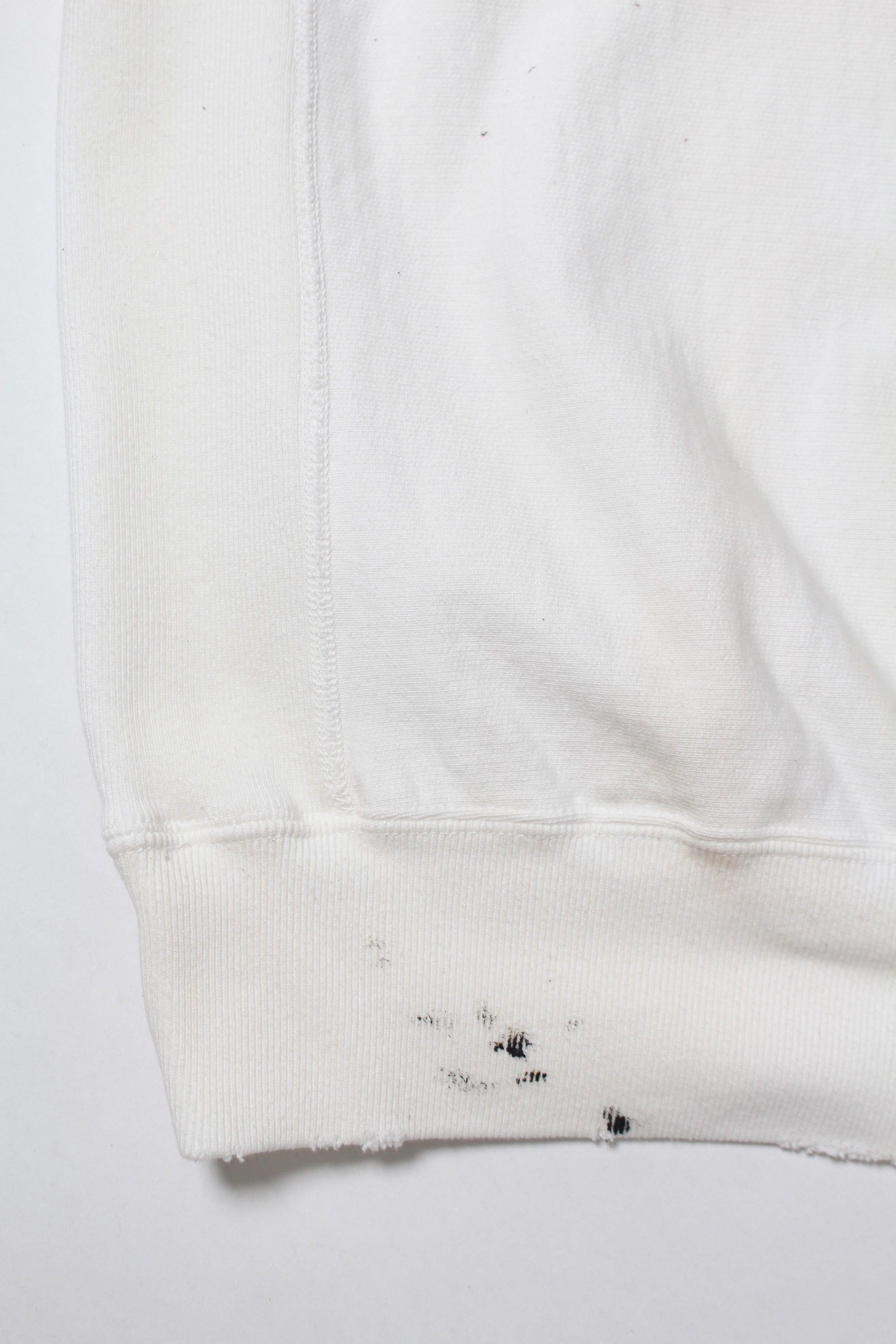 101ST AIRBORNE DIV.の部隊プリントを主役に、実際に部隊で着用され、使い込まれてきたスウェットをイメージしたデザイン。軍モノ特有の誇りと実用の匂いが混ざる空気感を、プリントの表情に落とし込んでいる。 着古したような加工を加えることで、長年着続けられてきたリアリティと、現場での時間の積なりを感じさせる佇まいに仕上げている。 1960年代以前のヴィンテージクルースウェットの設計思想を踏まえたボディに載せることで、ミリタリーの記号と古いスウェットの質感が自然に馴染むバランスになっている。