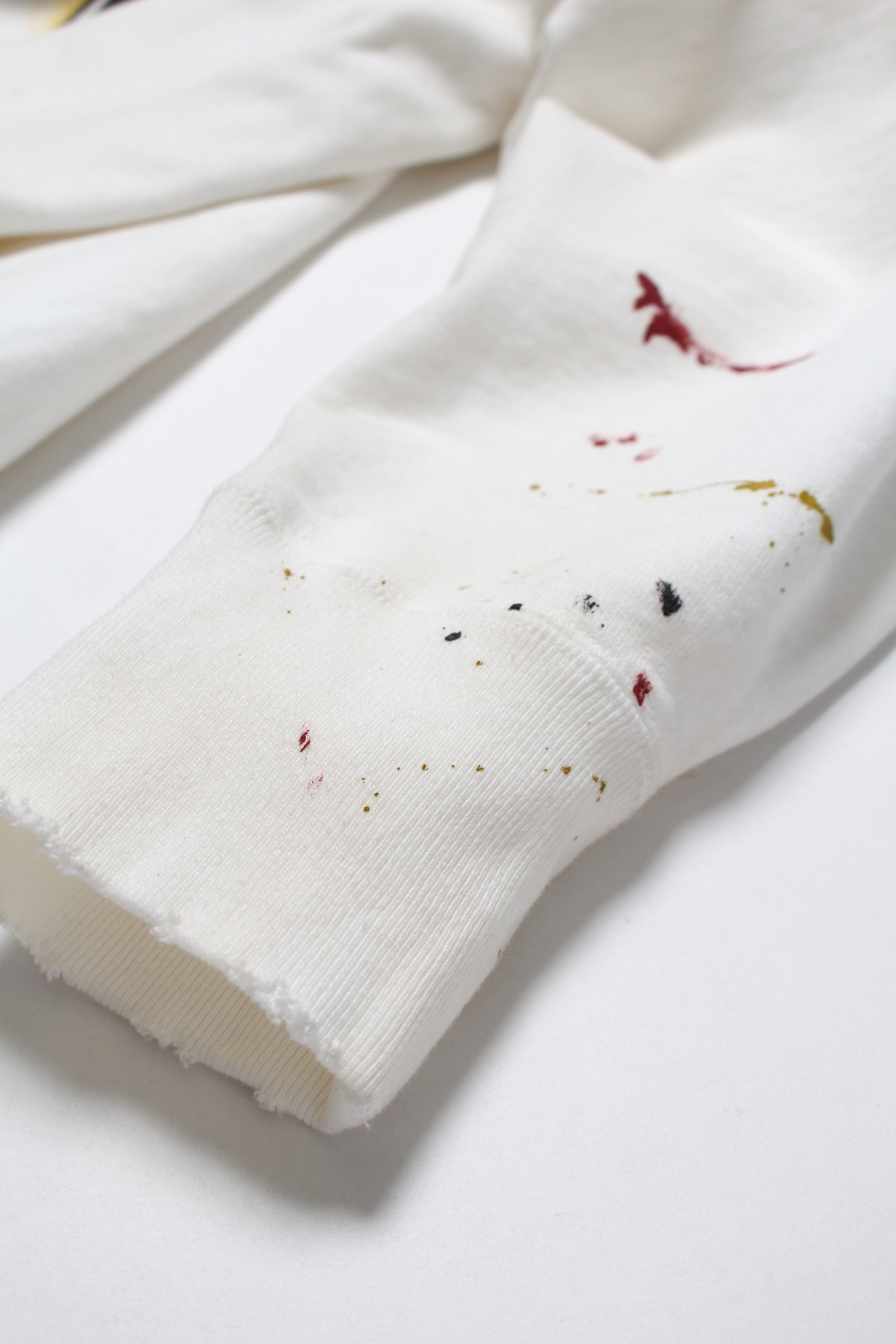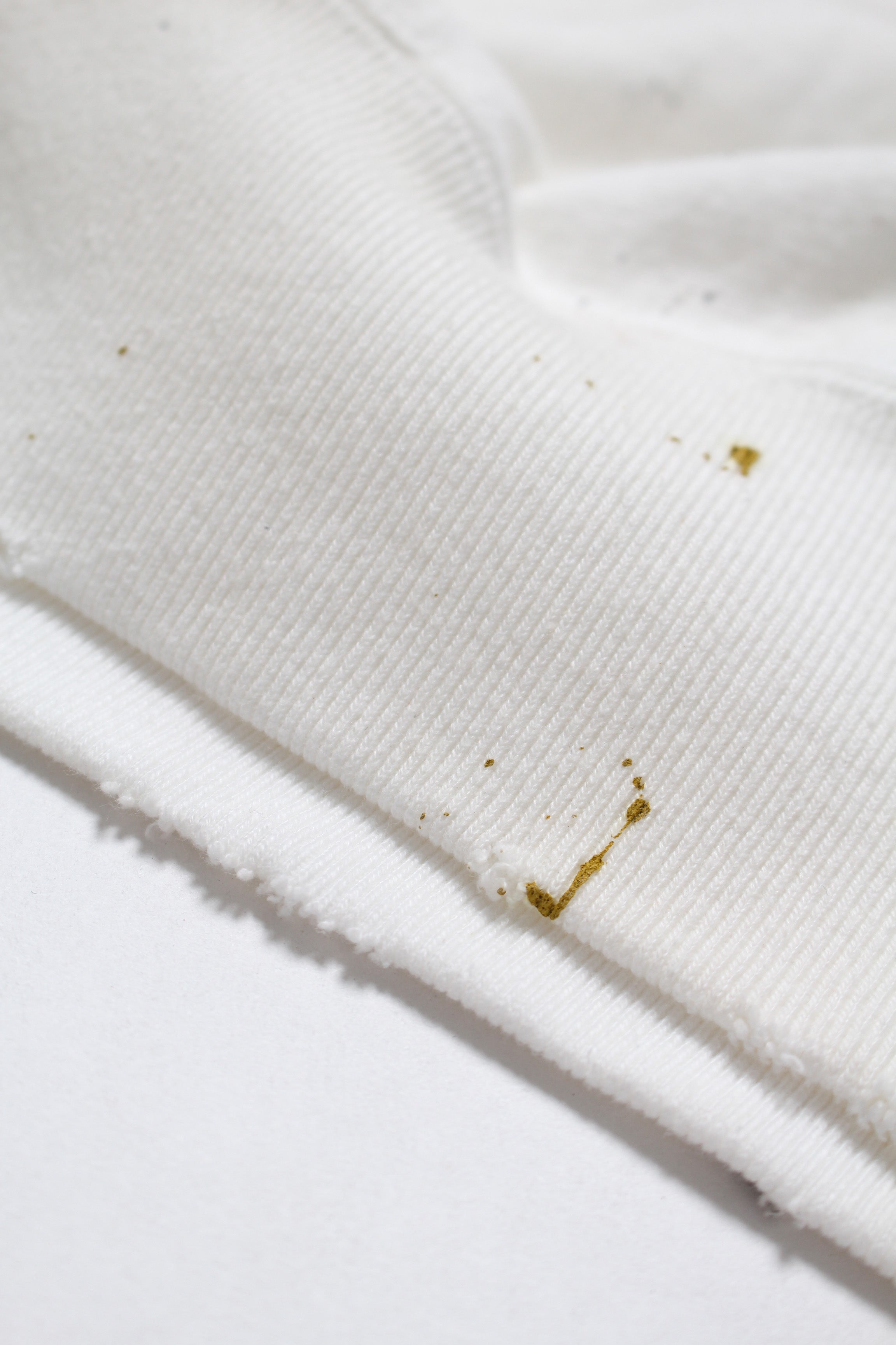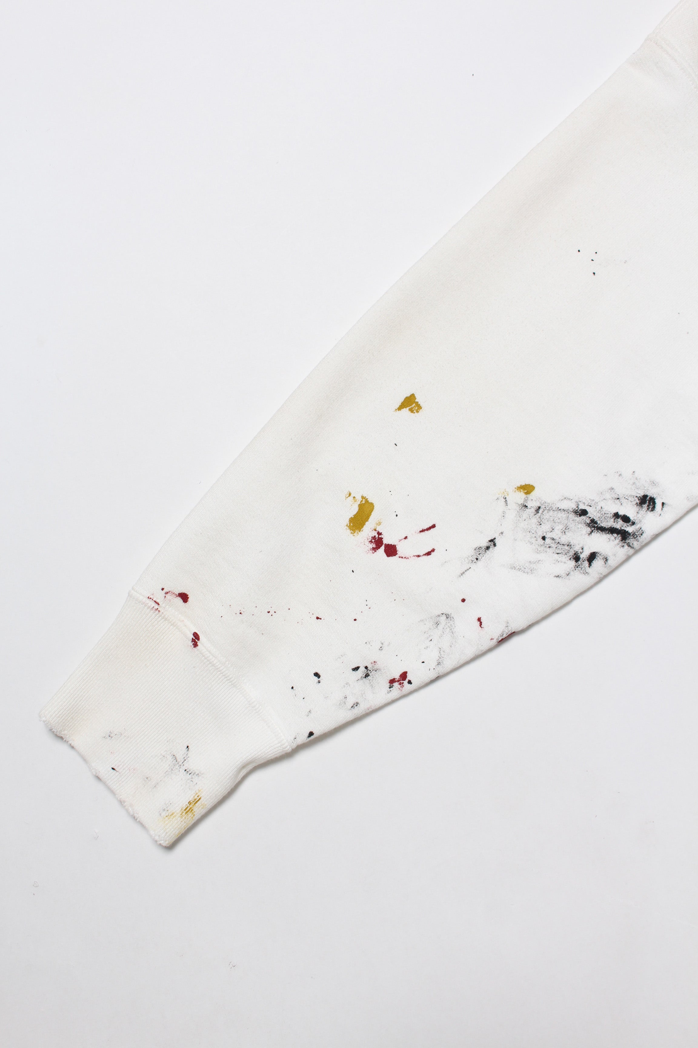 101ST AIRBORNE DIV.の部隊プリントを主役に、実際に部隊で着用され、使い込まれてきたスウェットをイメージしたデザイン。軍モノ特有の誇りと実用の匂いが混ざる空気感を、プリントの表情に落とし込んでいる。 着古したような加工を加えることで、長年着続けられてきたリアリティと、現場での時間の積なりを感じさせる佇まいに仕上げている。 1960年代以前のヴィンテージクルースウェットの設計思想を踏まえたボディに載せることで、ミリタリーの記号と古いスウェットの質感が自然に馴染むバランスになっている。
