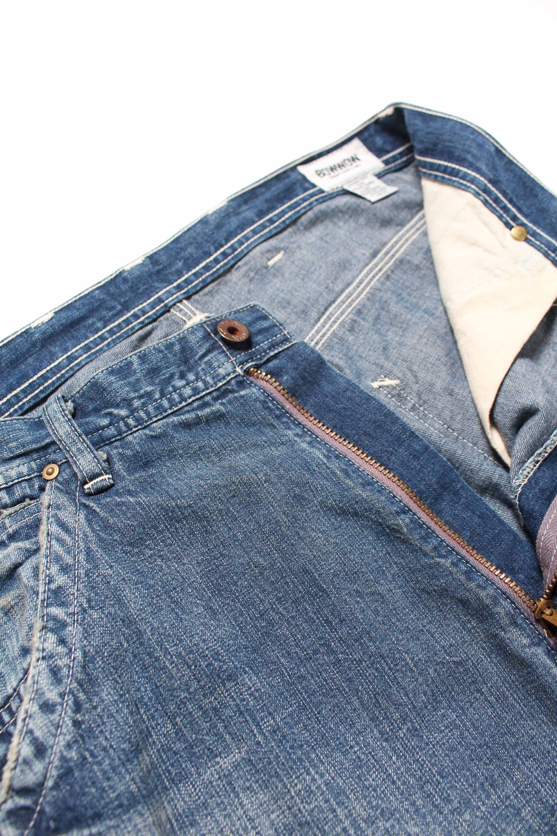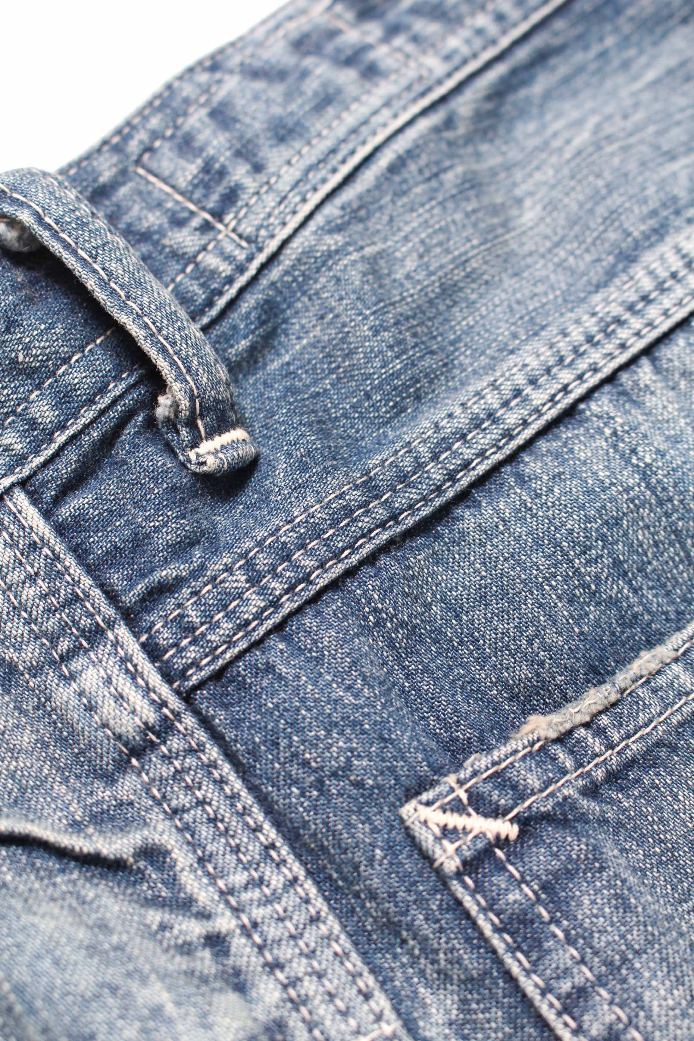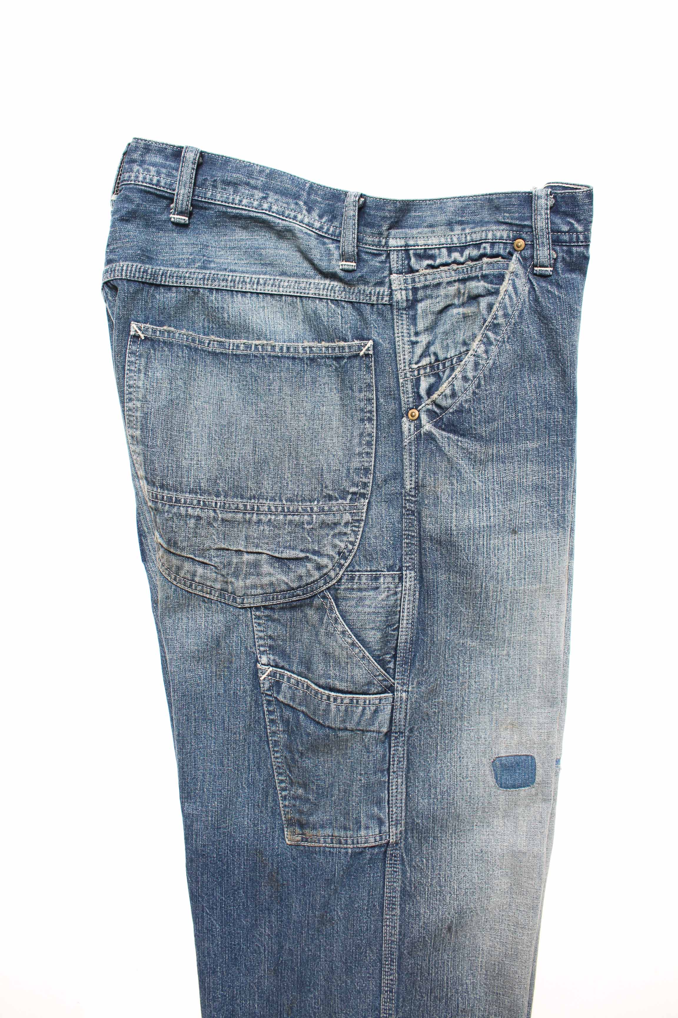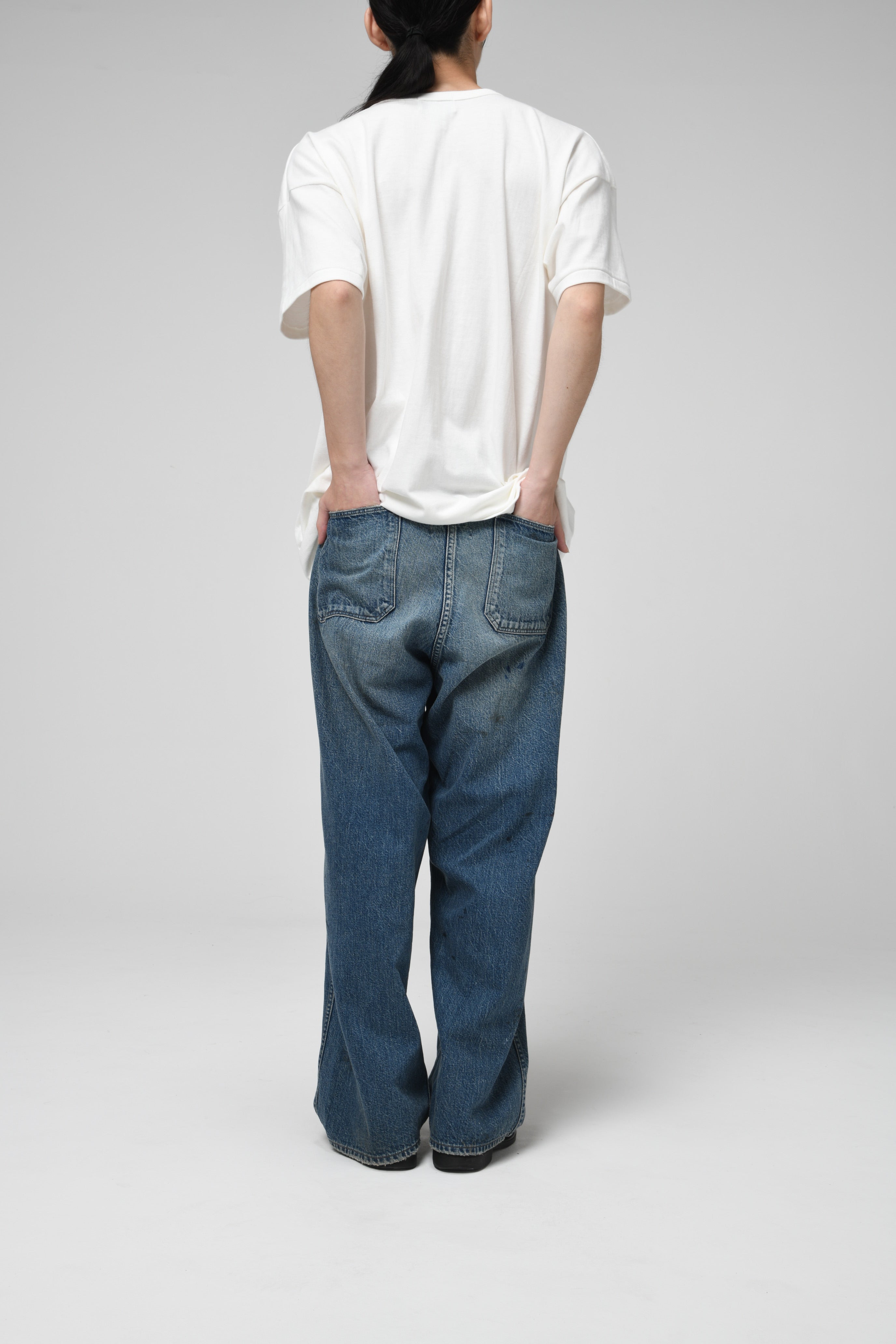 40年代のワーキングペインターパンツをディティールに、設計した一本。ペインター特有の無骨な構造やポケットワークを踏まえ、実用性の匂いをそのまま残している。 擦れ、退色、汚れが重なった加工表現に加え、破れやリペア痕まで踏み込んだ表情づくりで、長年使い込まれてきたリアルな佇まいを再現。ブランドならではの、唯一無二の加工リペアデザインが際立つ仕上がりになっている。