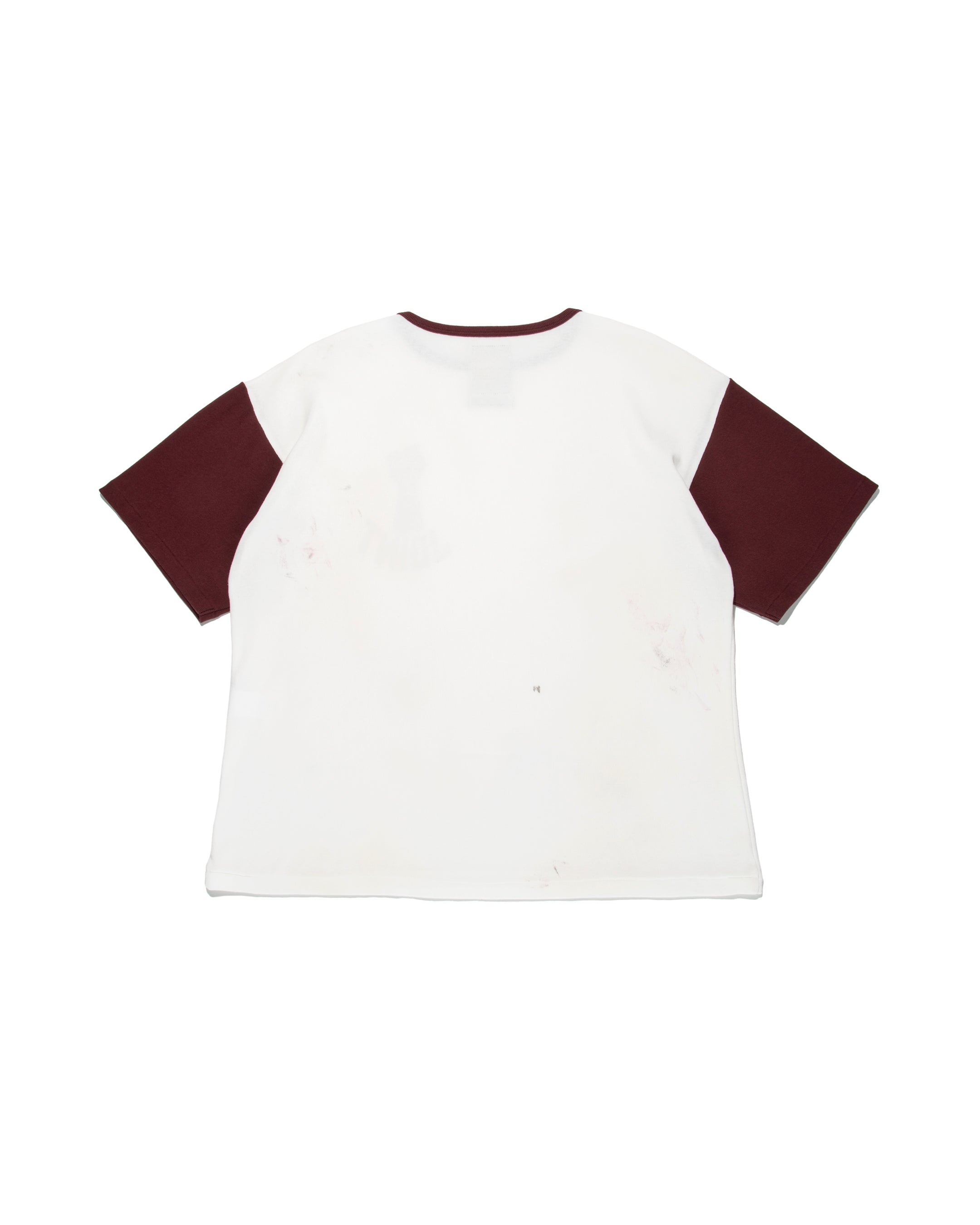 アンダーウェアとして長い歴史を持つフライス素材をベースに、オリジナルで編み立てたキックバックの効くフライスを使用したカットソー。伸縮性と戻りの良さを活かし、身体に馴染みながらもだらしなくならない着用感に仕上げている。 もともとは下着として生まれた素材の機能性を踏まえつつ、Tシャツとして成立するサイズ感とシルエットで設計。スポーツアンダーウェアに見られるツートン仕様を取り入れ、インナー由来のデザインをそのまま表現している。