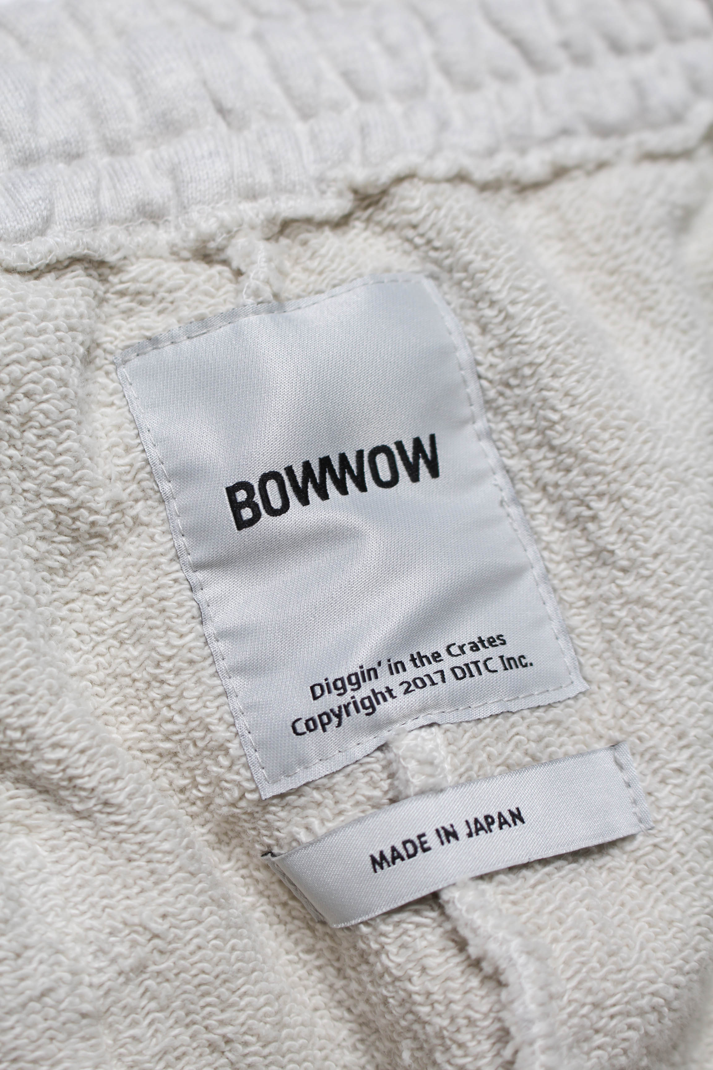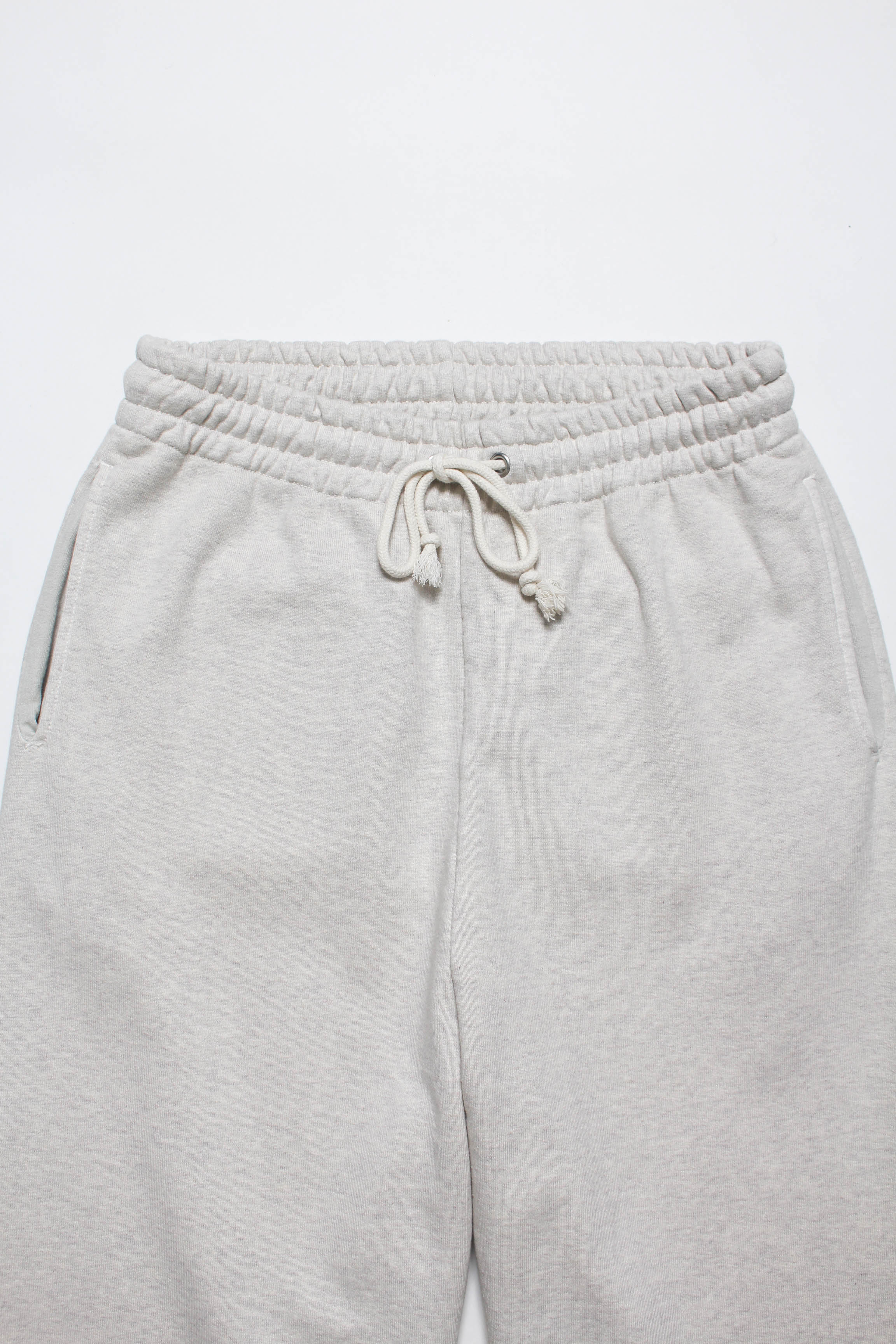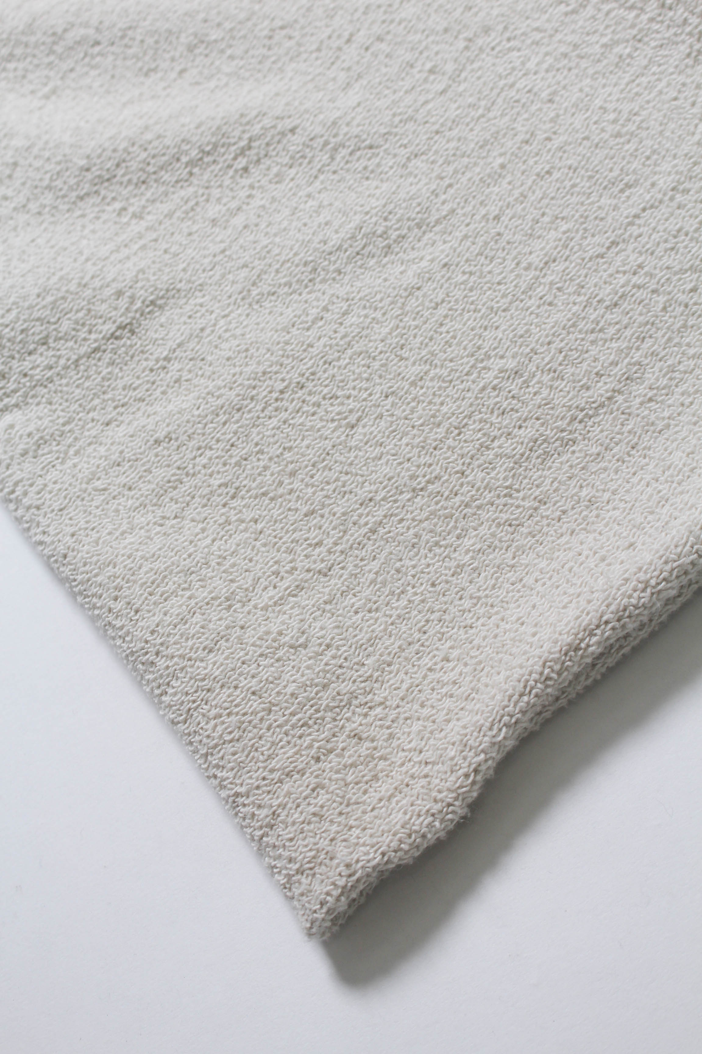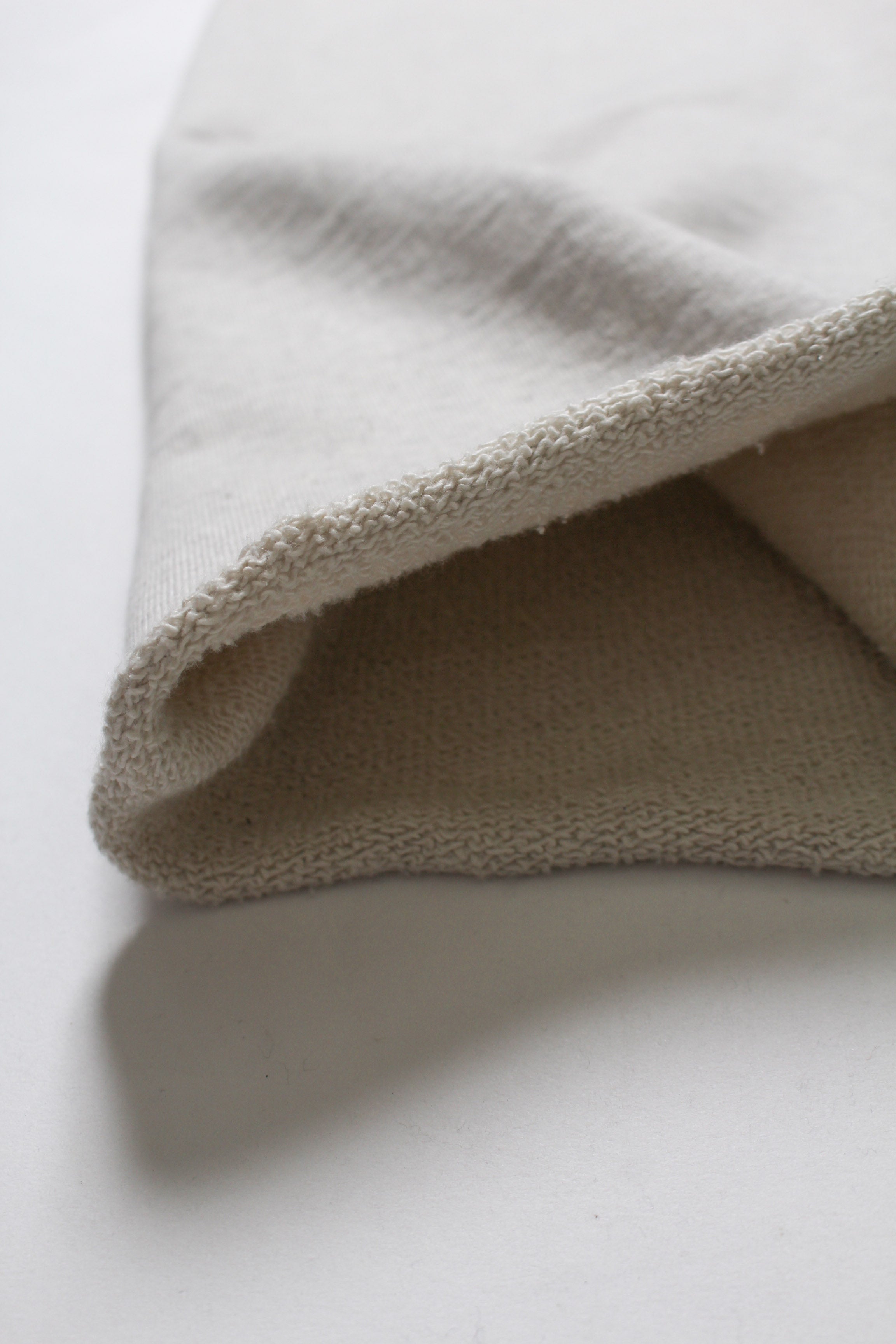 Sweat pants made from heavy, non-brushed, all-season French terry with a vintage-textured surface from a special knitting machine. Designed with a deep rise and a slacks-like line to avoid a sloppy look. Finished with raw-cut hems to intentionally leave a sense of roughness and “unfinished” vintage character.
